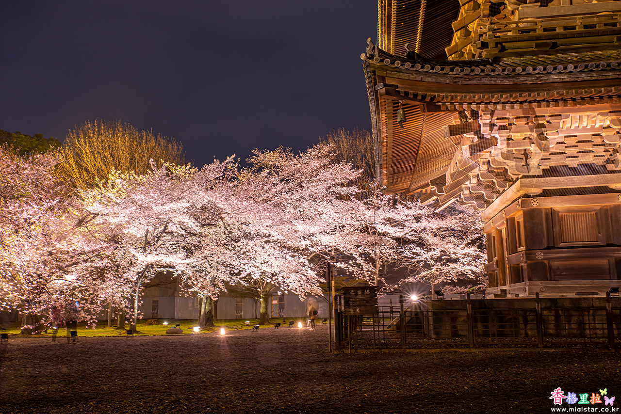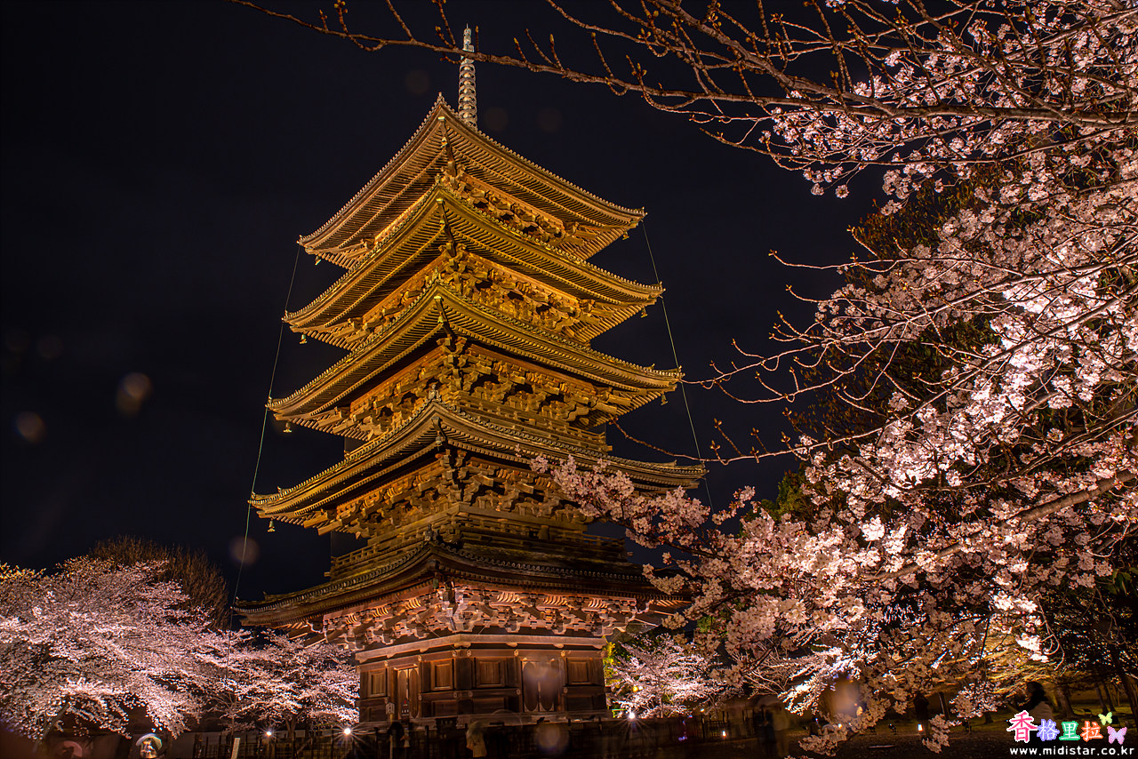 일본 교토의 벚꽃시즌에 야경을 관람하러 많이 찾는 도지(東寺)는 이 기간 야간 관람료도 비싸게 받는다.