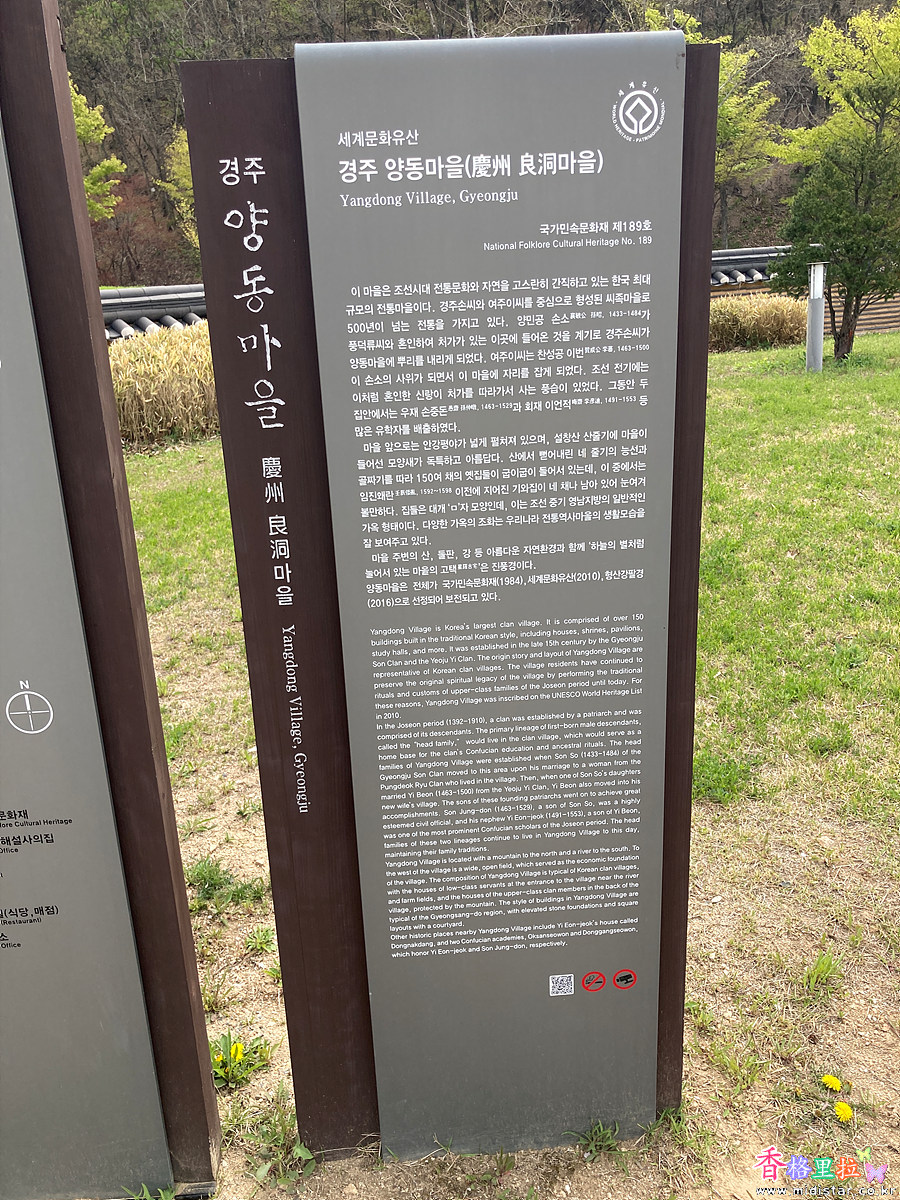▲경주 양동마을 안내문