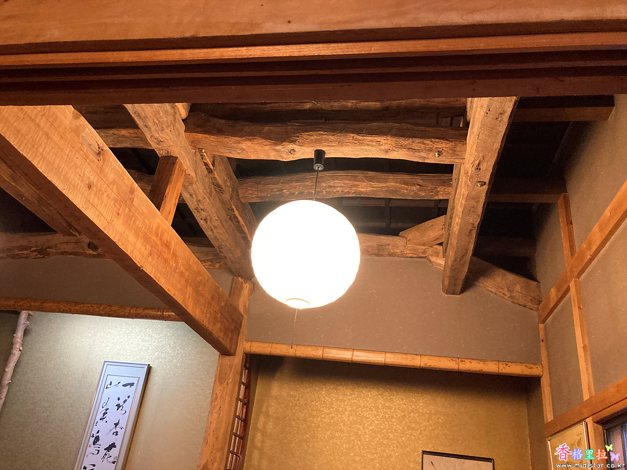 천장은 서까래가 보이는 구조로 오랜 가옥을 리모델링했음을 보여준다.