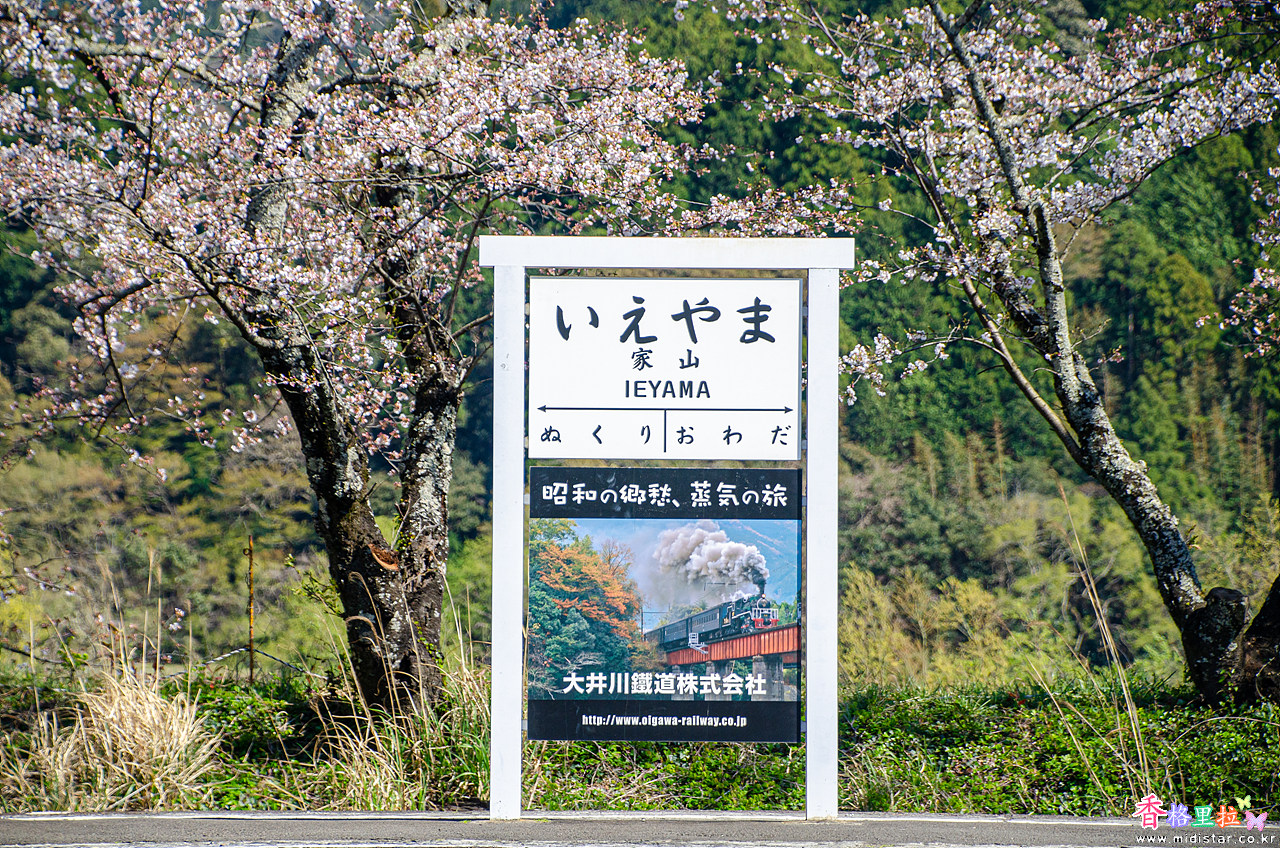 이에야마가와(家山川)의 벚꽃도 유명하지만 이에야마에끼(家山驛)에서 출발하는 증기기관차(Steam Locomotive)가 유명한 곳이다.