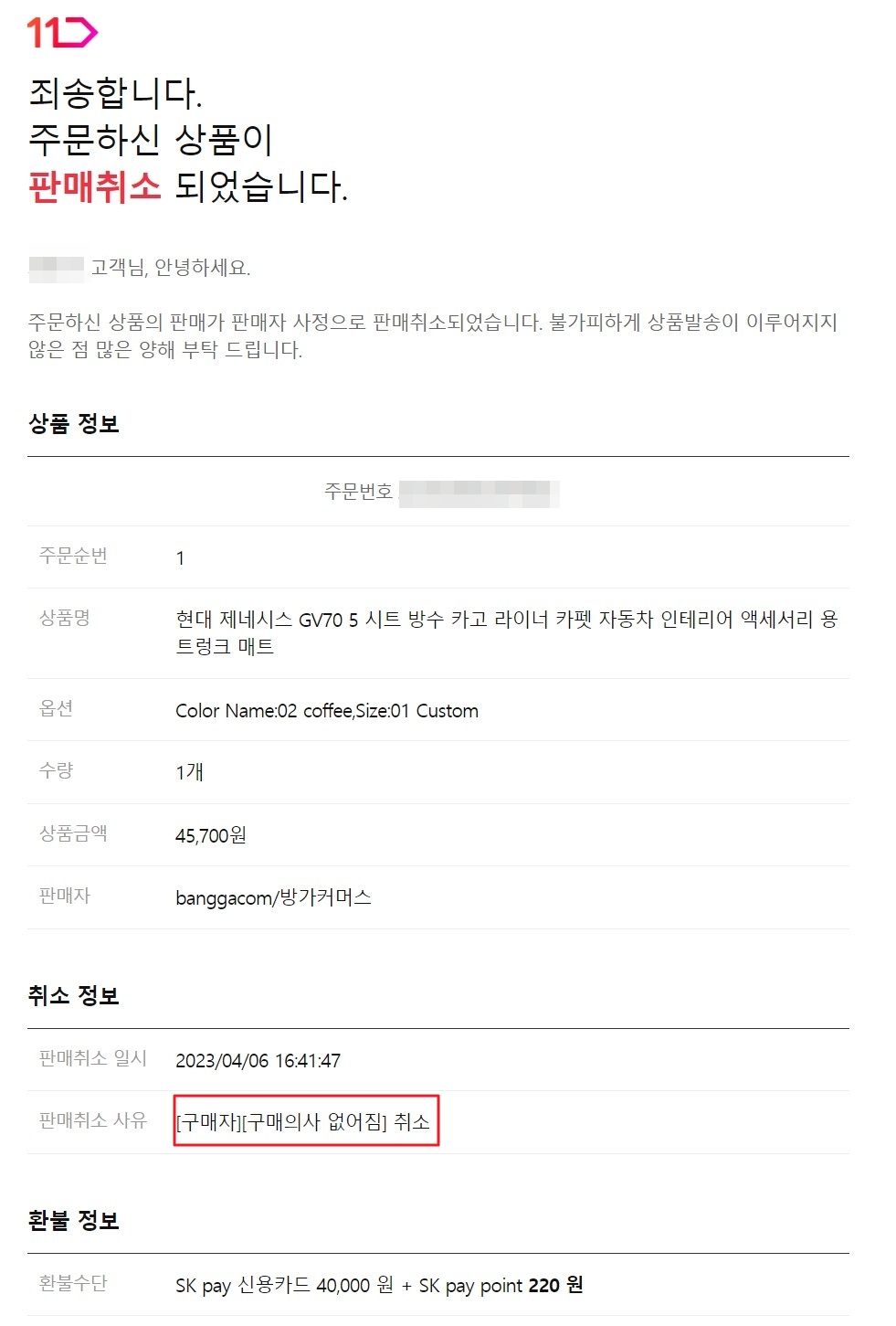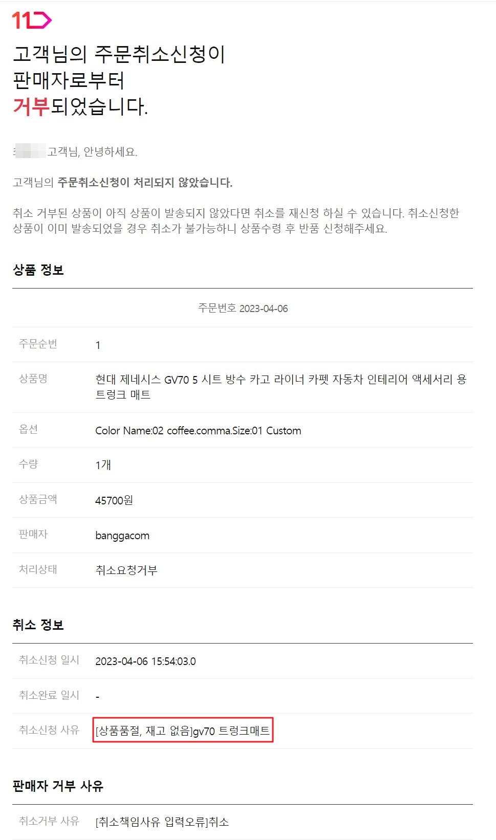 내가 [구매의사 없어짐] 취소 라니 황당하다