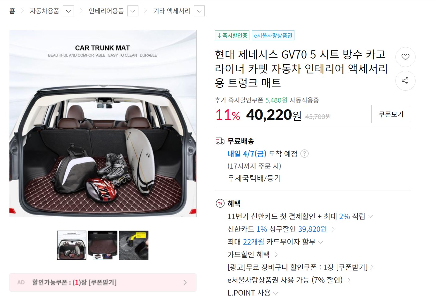 아내가 트렁크에 은박지로 된 매트를 깔고 다니는데 지저분해 보이고 물건이 자꾸 미끄러진다며 매트를 하나 사 달라한다.