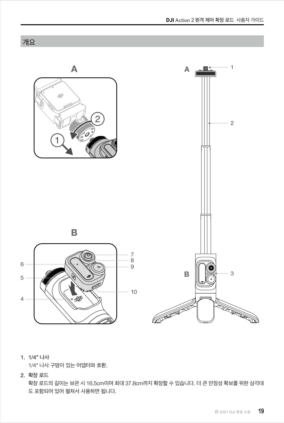 ▲DJI Osmo Action2용 원격제어 확장로드(Remote Control Extension Rod) 매뉴얼