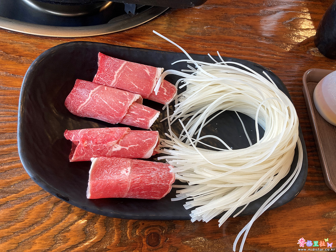 육수에 고기와 국수를 추가로 넣어서 샤부샤부로 먹는다.
