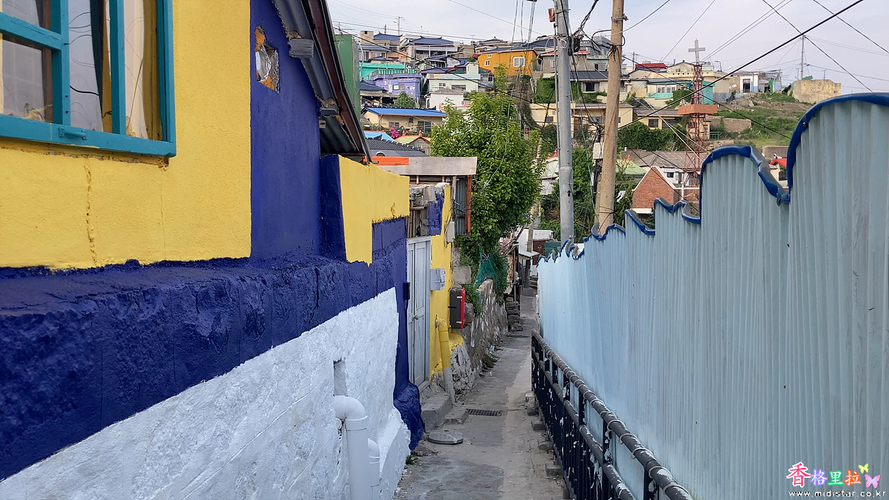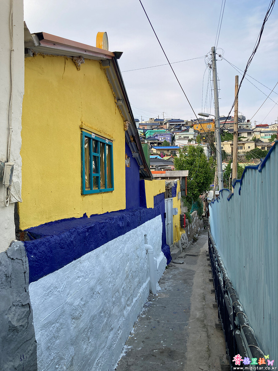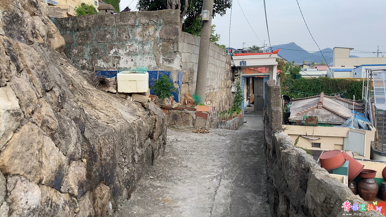 최근에 칠한듯 노란 담벽이 눈에 띈다.