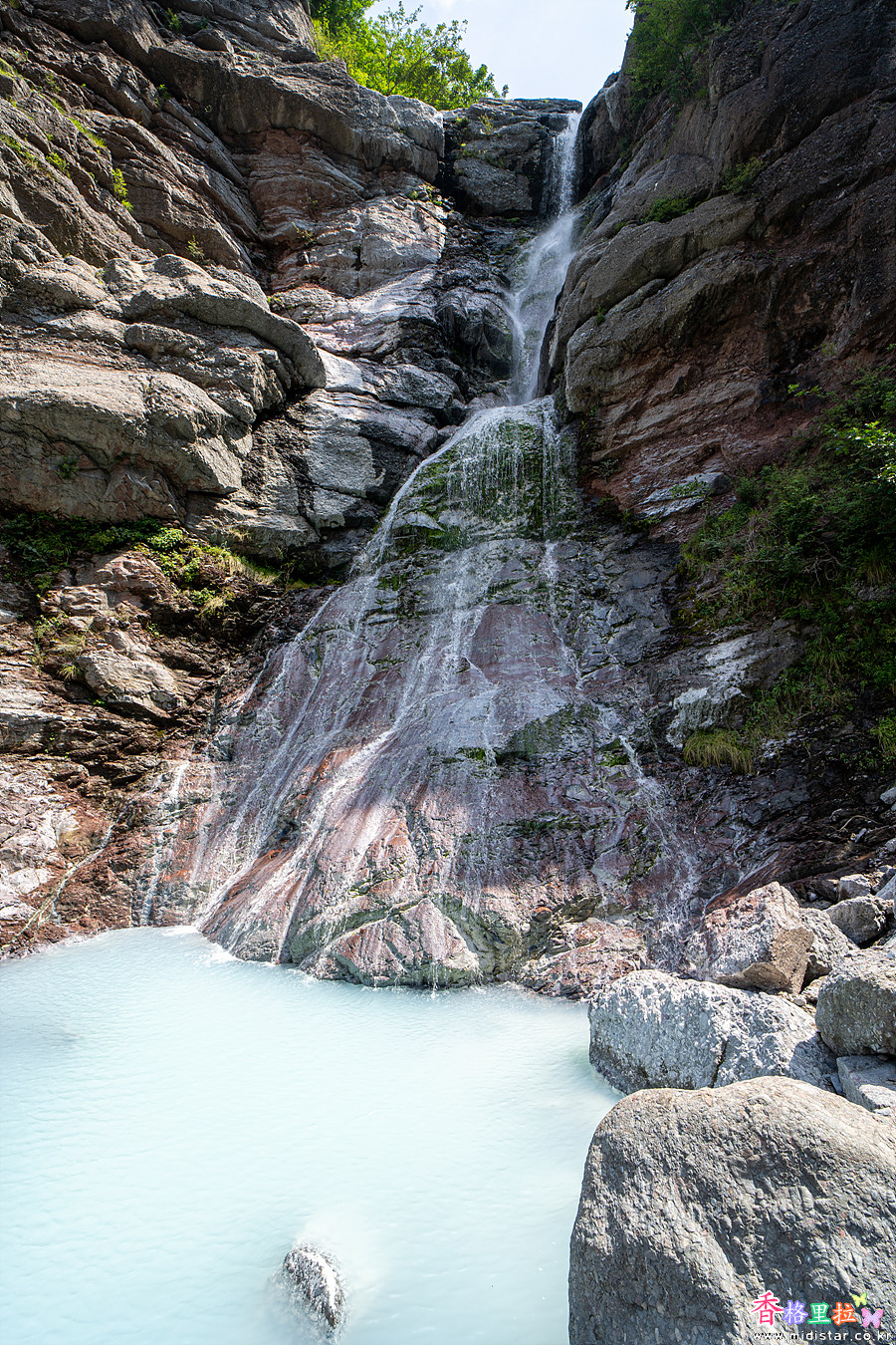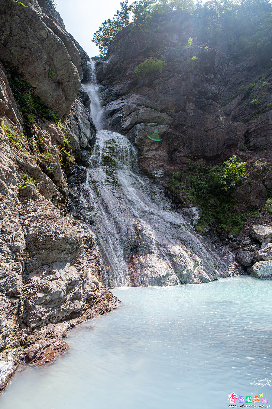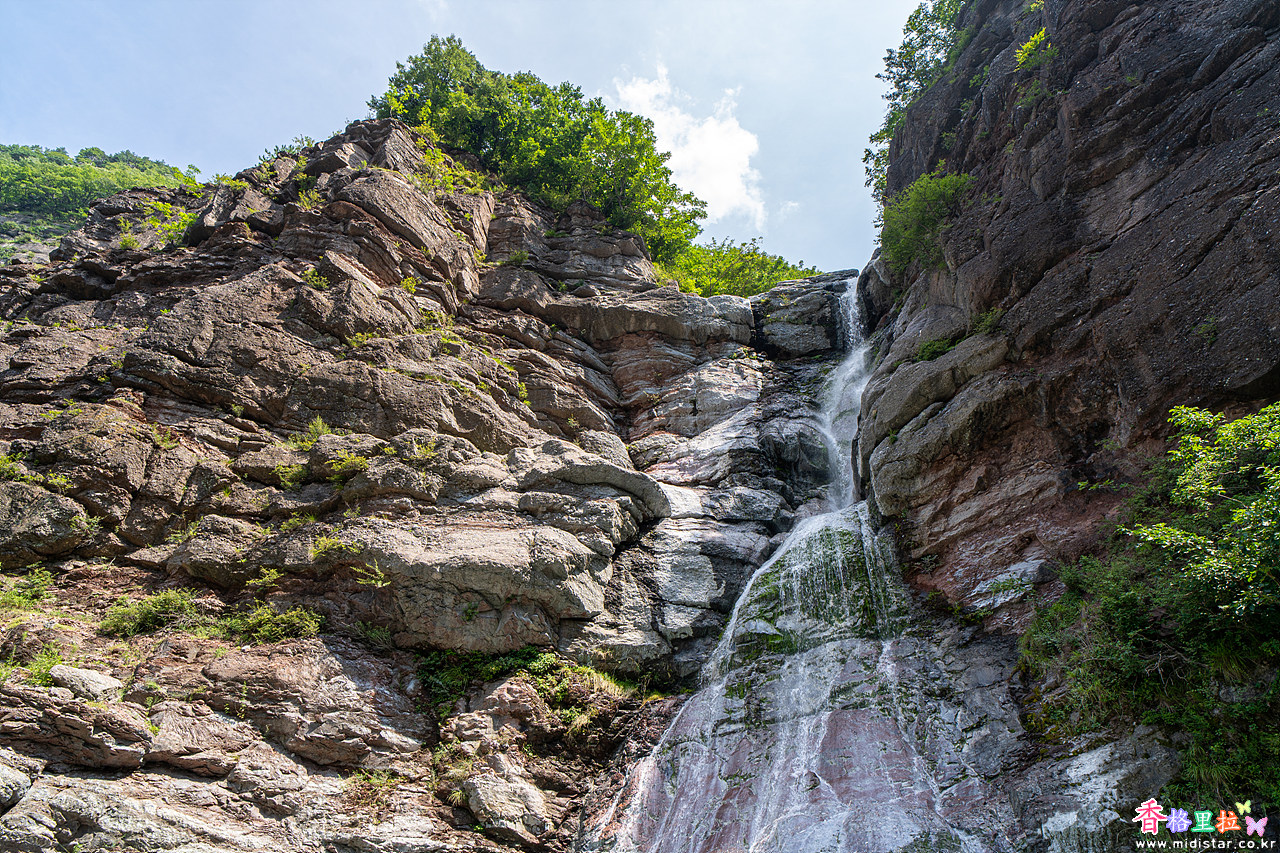 물빛이 우유빛이다. 미인폭포는 이런 우윳빛 물색을 볼 수 있는 국내 유일한 폭포인 것 같다.