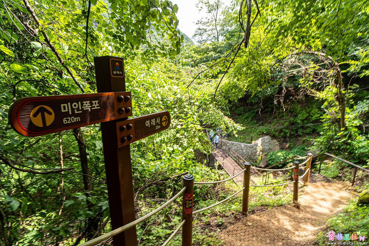 ▲미인폭포 왕복(1.6Km, 1시간 5분 소요)