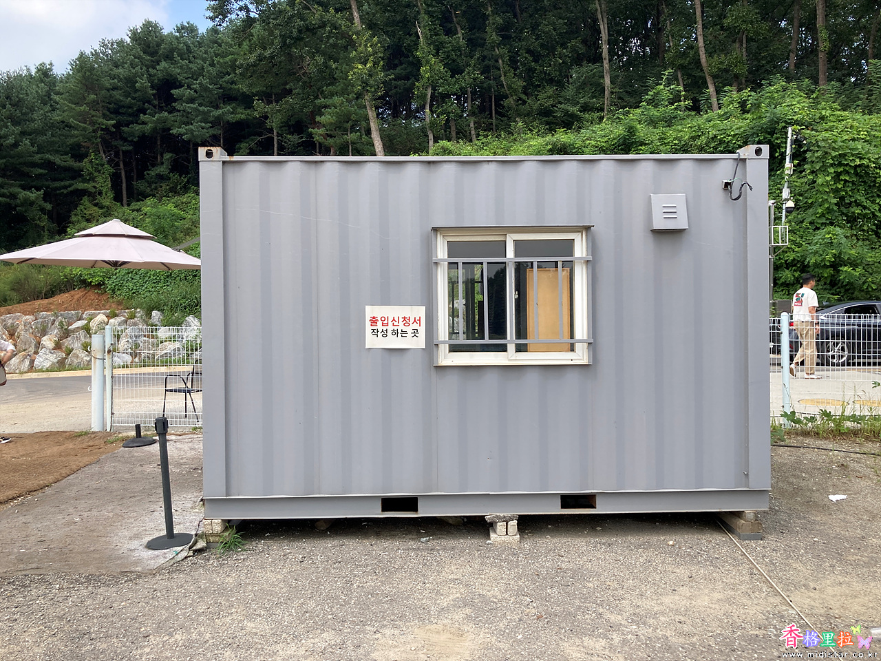입구에 다다르니 주차장이 나오고 컨테이너박스에 '출입신청서 작성하는 곳'이라고 쓰여있다.