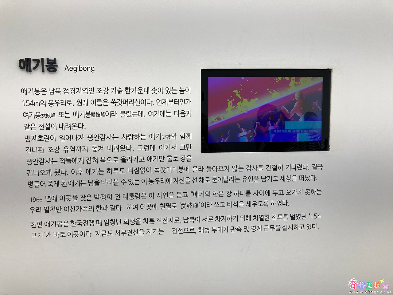 앞에 보이는 북한땅에 대해 짧은 영상으로 설명해주고 있다.