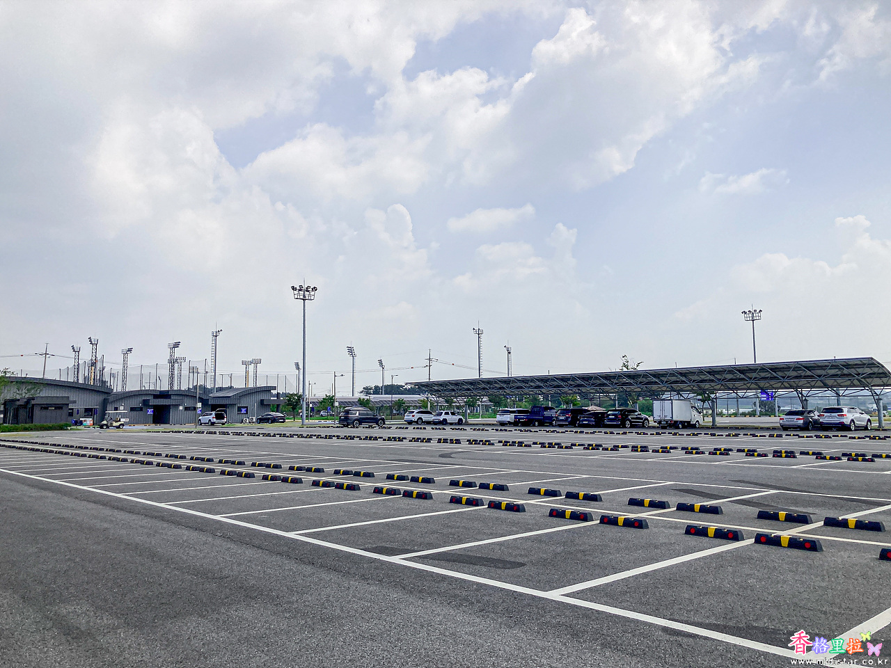 태양열 발전설비가 설치되어 있는 그늘에 주차했다.