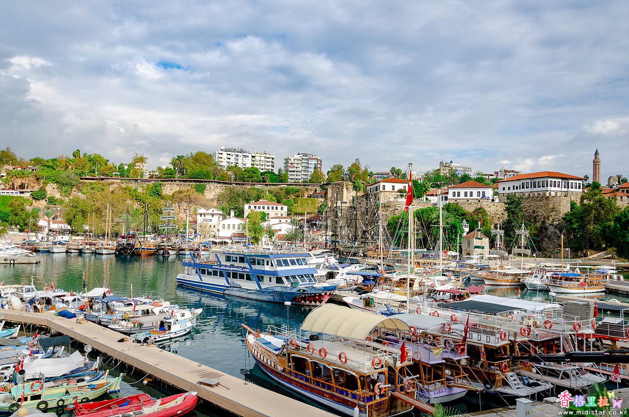 관광객을 위한 유람선들이 즐비하게 늘어선 Antalya 항구