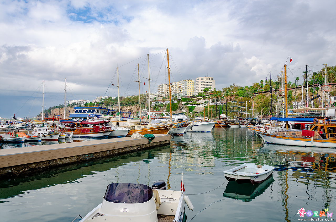 관광객을 위한 유람선들이 즐비하게 늘어선 Antalya 항구