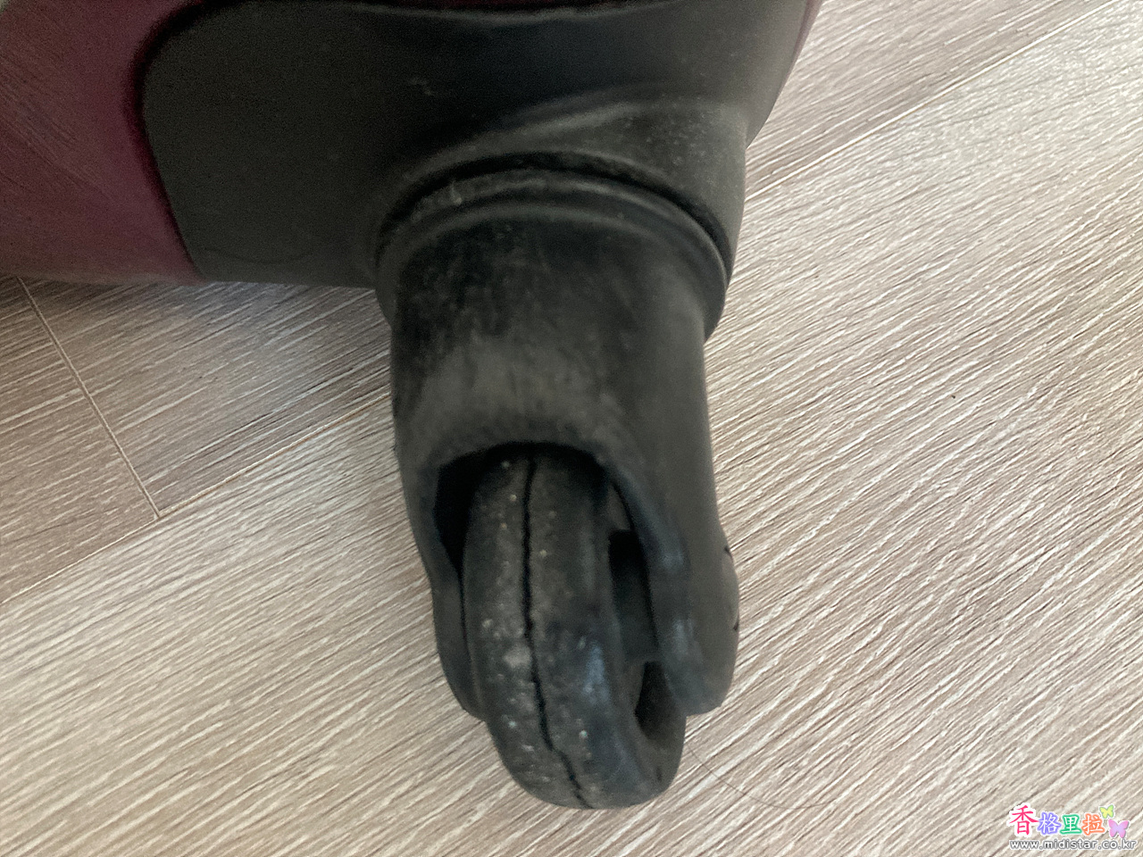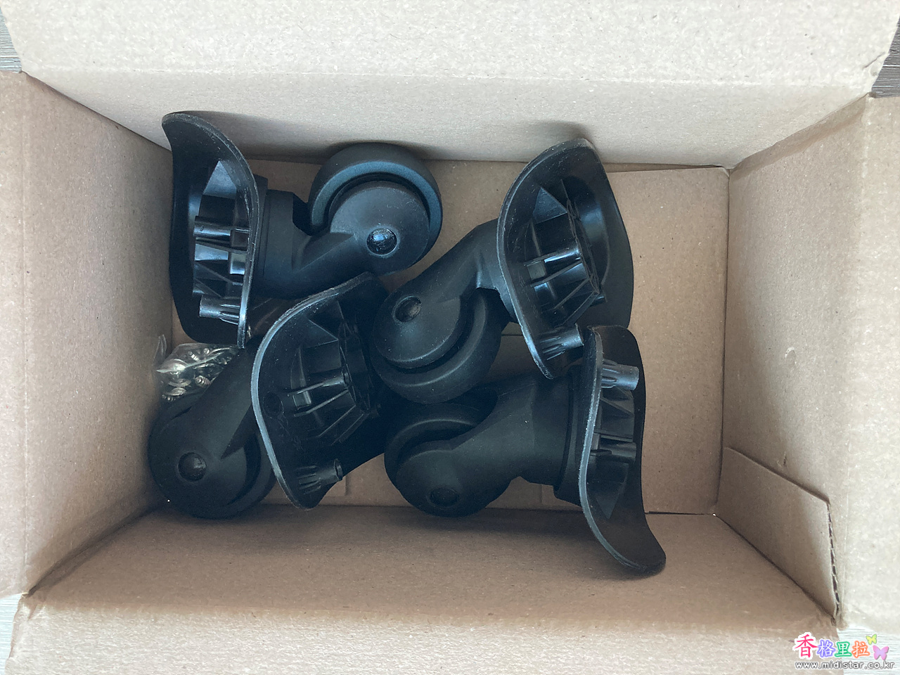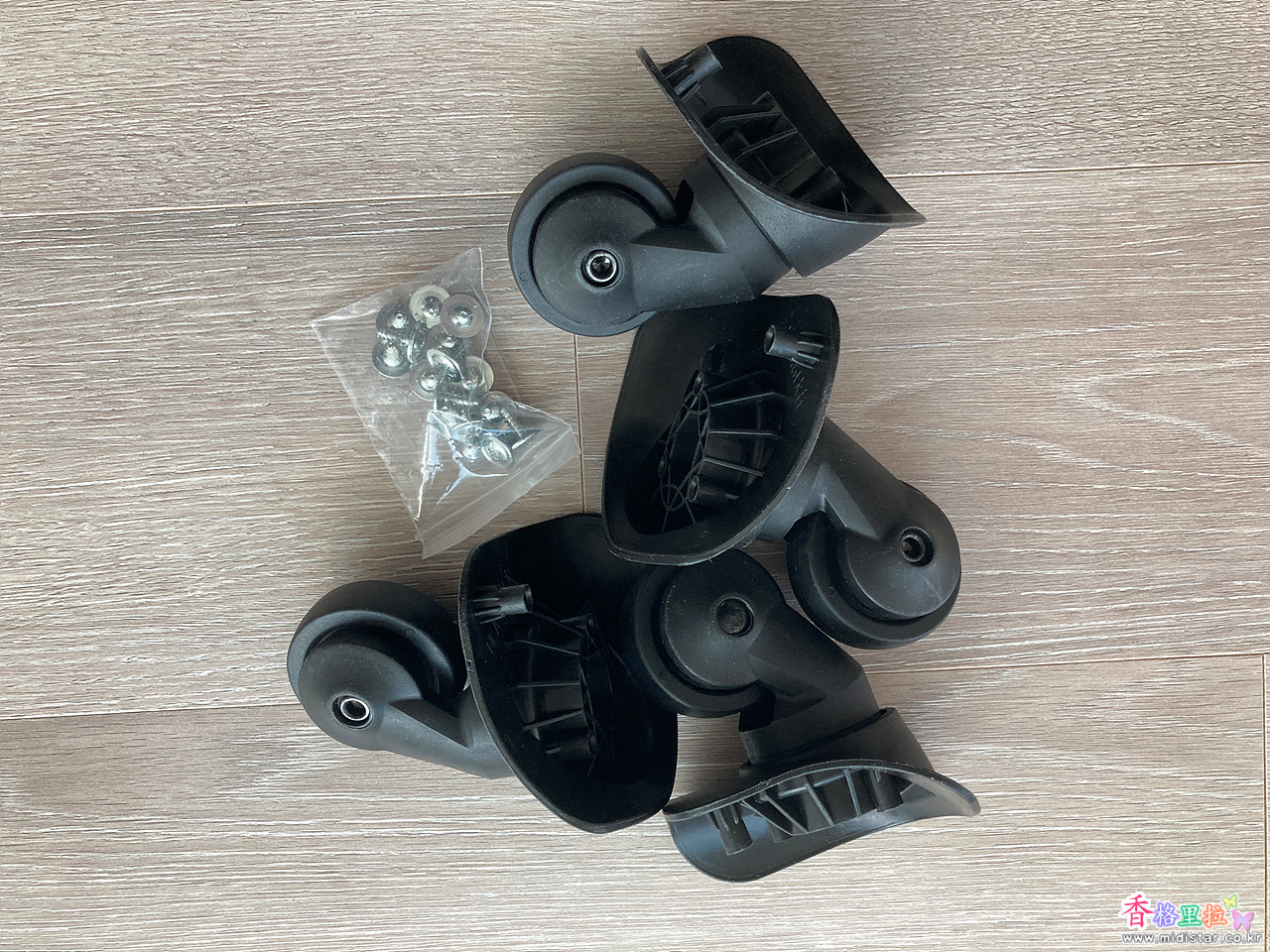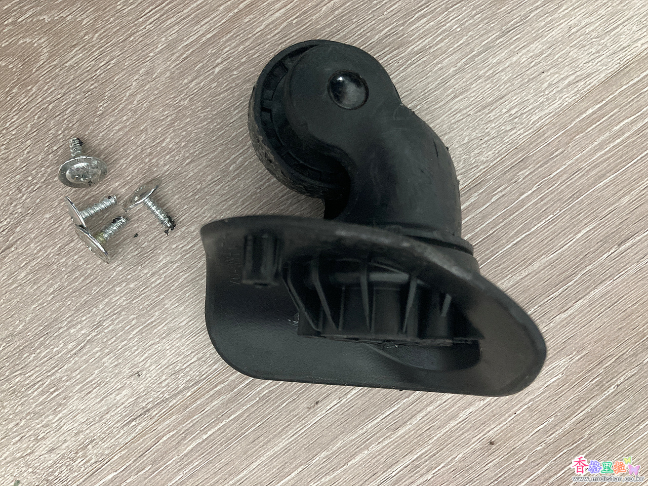 가방을 세우고 나사를 풀 수가 없어서 가방을 눞인채 나사를 풀고 새 바퀴를 달려니 자세가 안 나와서 조금 힘들었지만 바퀴 4개를 교체 완료했다. 나사는 기존 나사를 사용했다.