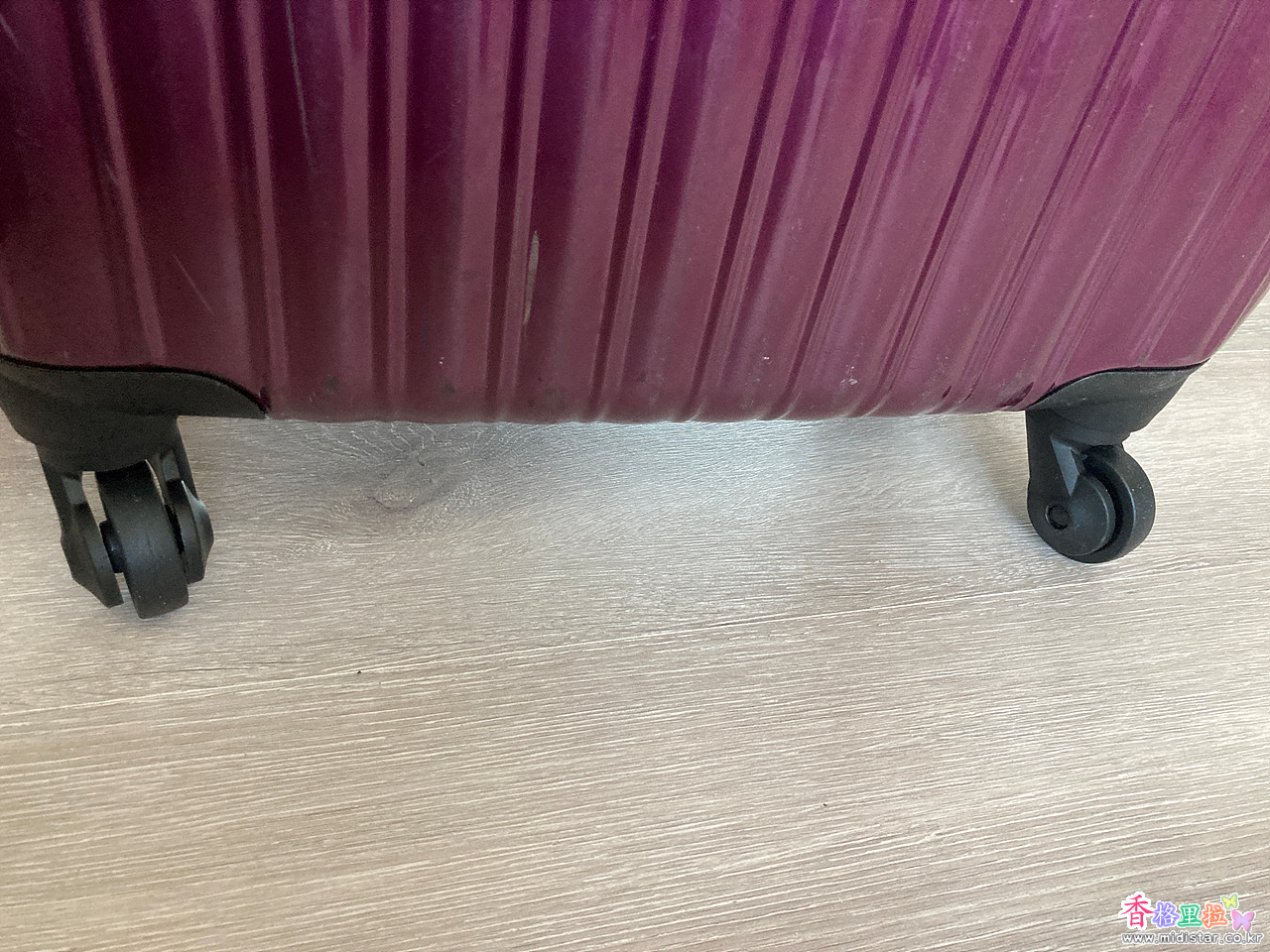 새로 바퀴를 4개 교체(28,800원, 택배비 별도)하므로써 가방을 몇 년은 더 사용할 수 있게 되었다.