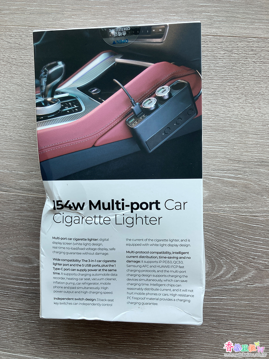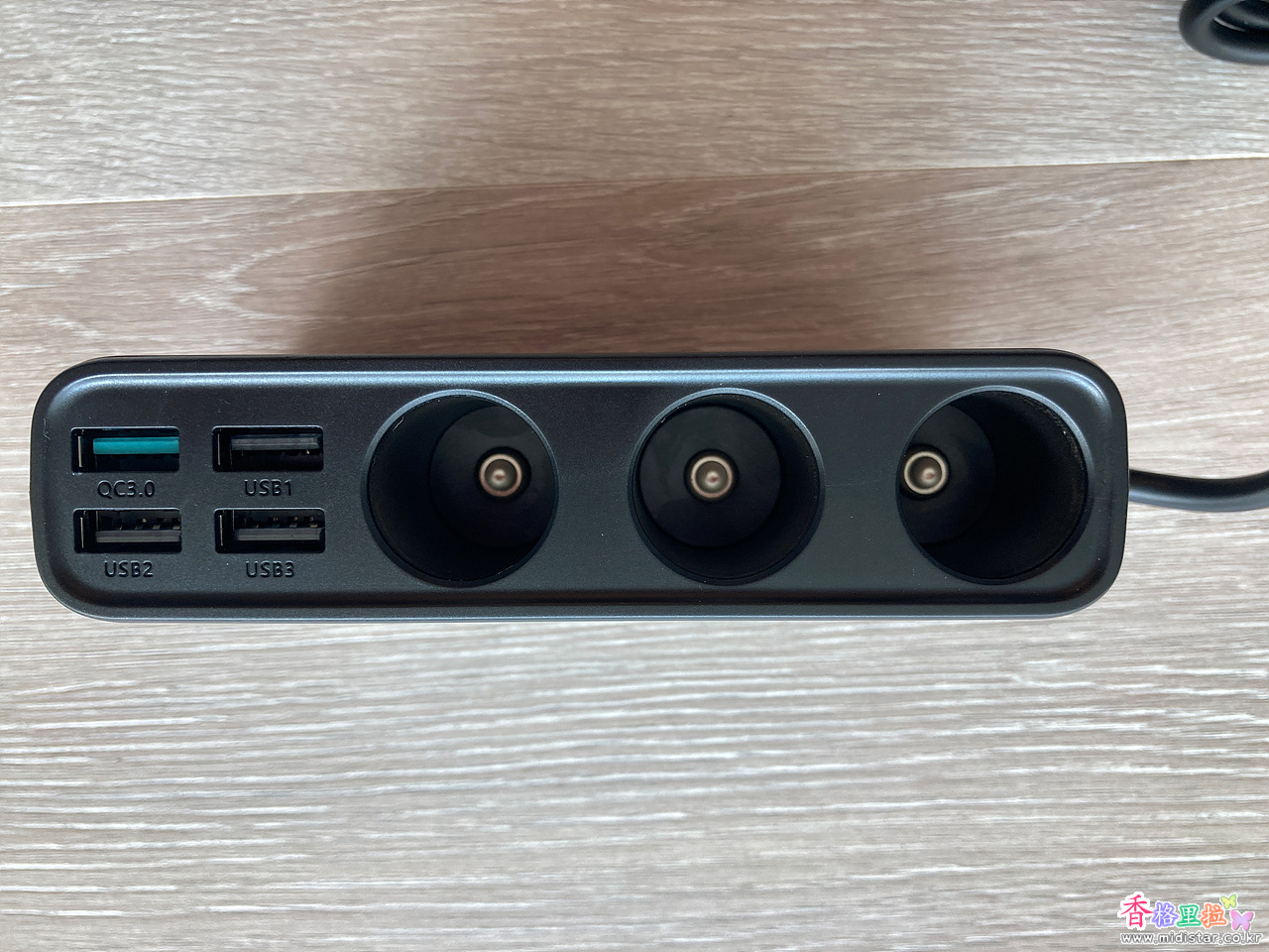 본체에 3개의 USB Port, 1개의 QC(Quick Charger) 3.0 Type USB Port가 있다. 그리고 3 개의 시가잭 홀이 있다.