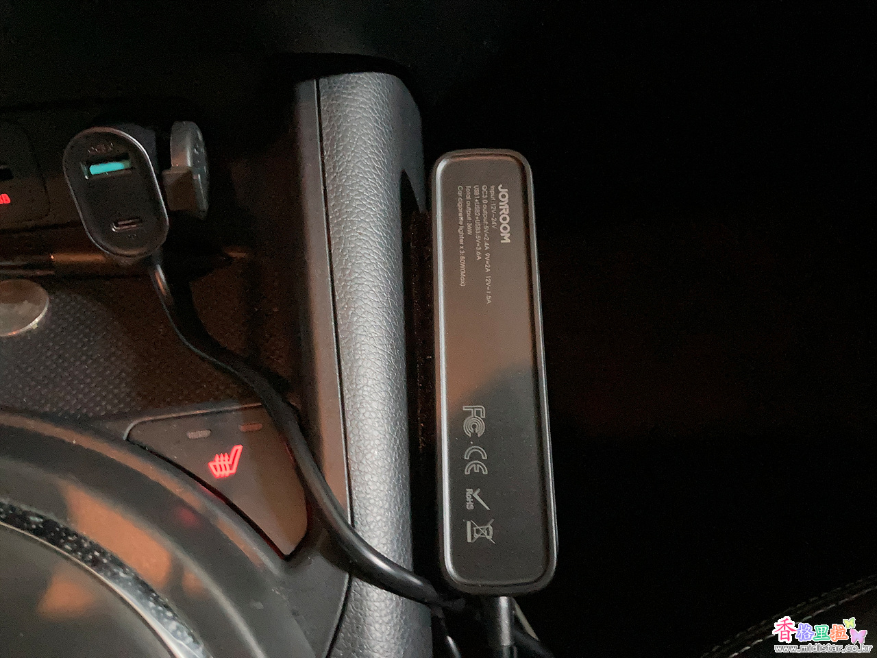 시가잭을 꽂고 스위치를 눌러주면 측면의 램프가 켜진다.