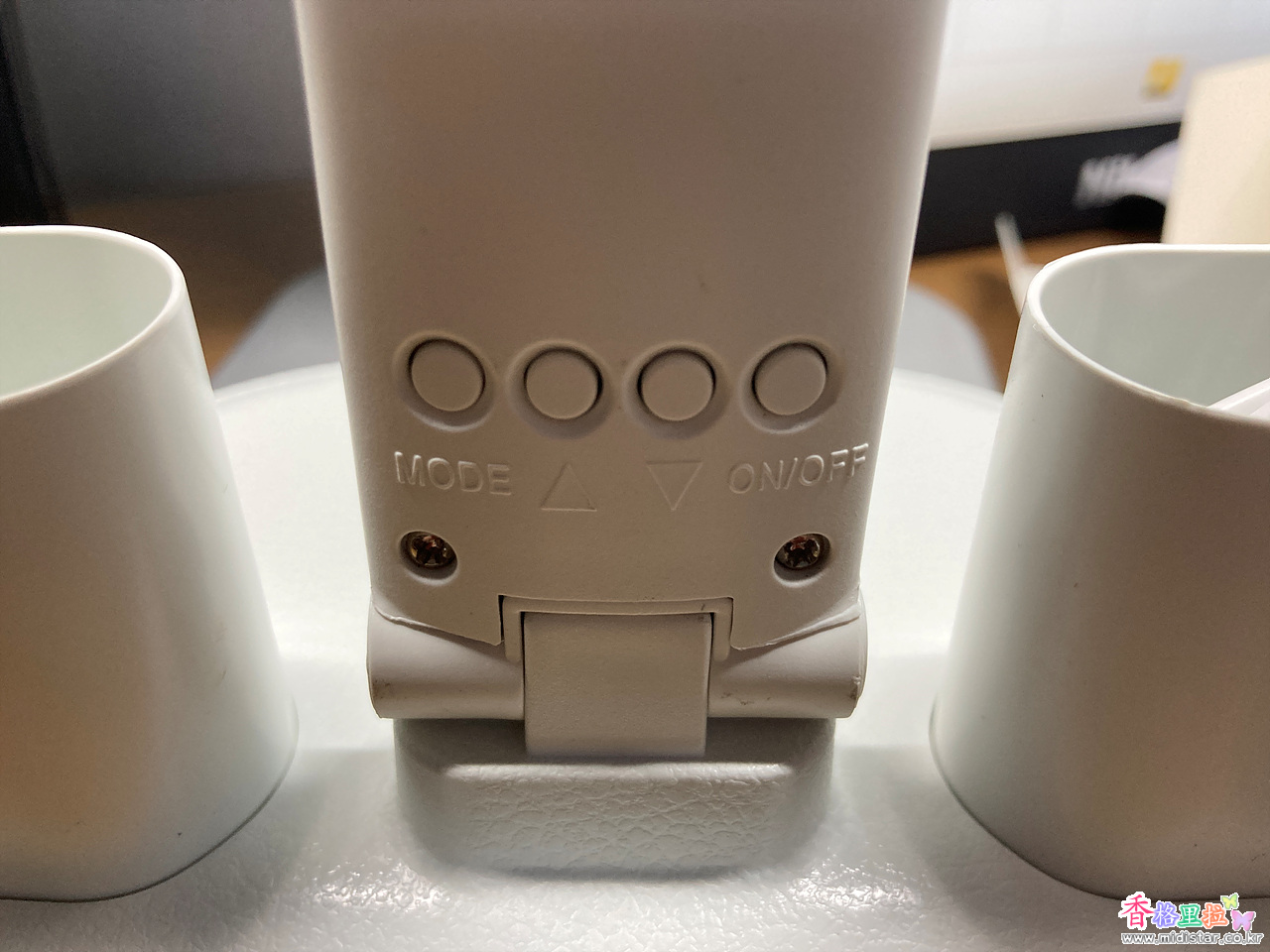 뒷면에 시계 ON/OFF 와 시계를 세팅할 수 있는 버튼 3개가 있다.