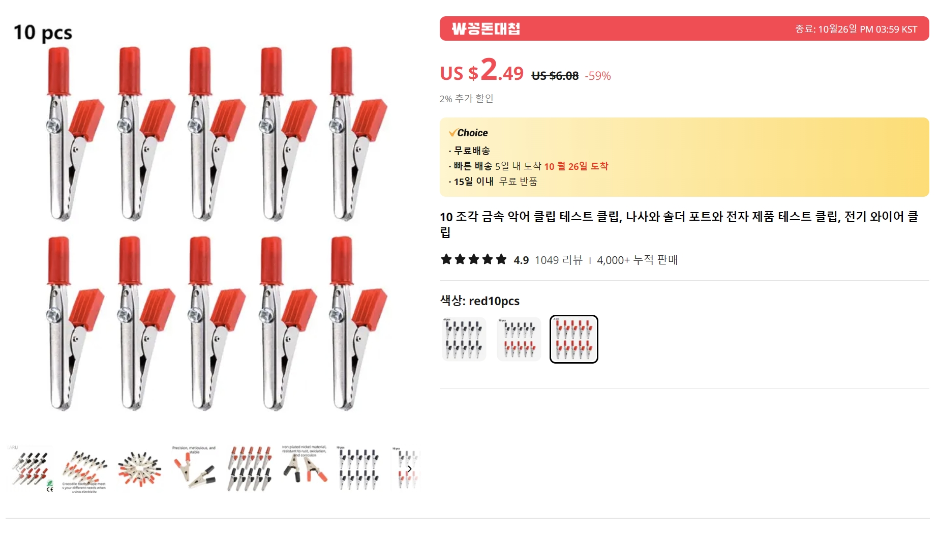 악어 클립 (Alligator Clip) 10개에 US$ 2.49
