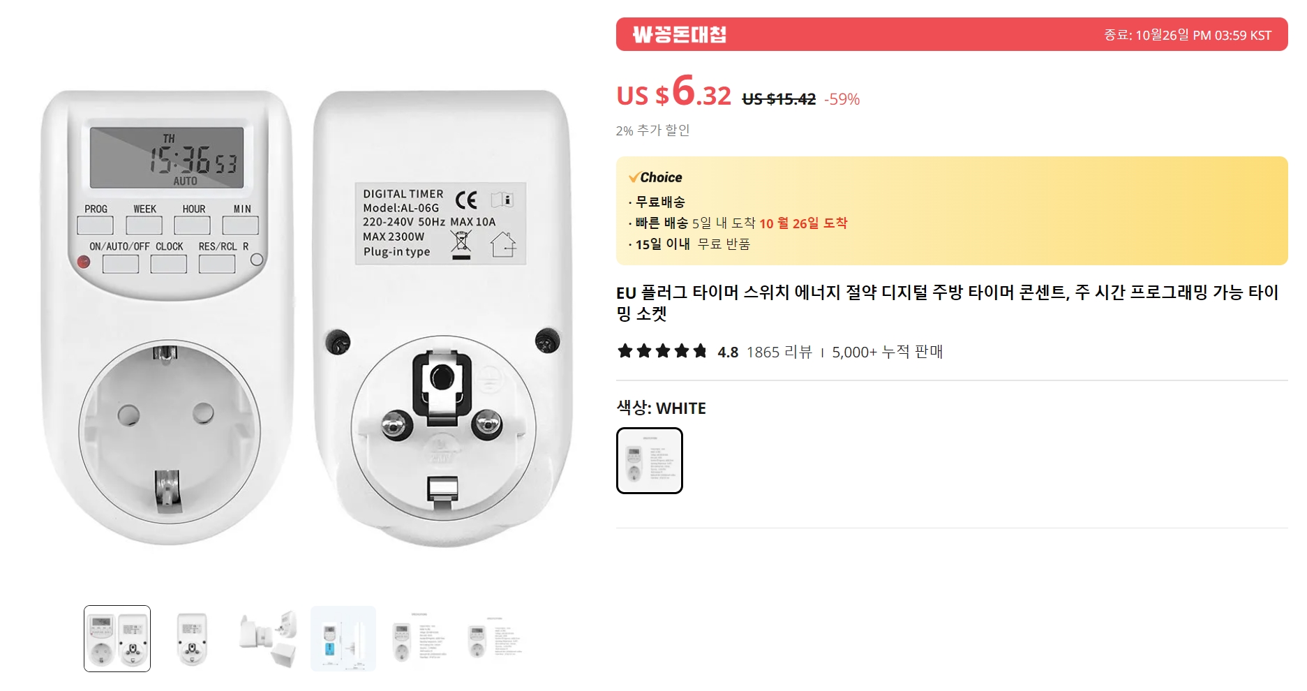 전기 콘센트에 타이머를 설정해서 요일별 스케쥴로 연결된 부하를 ON OFF 제어해 주는 스위치이다.