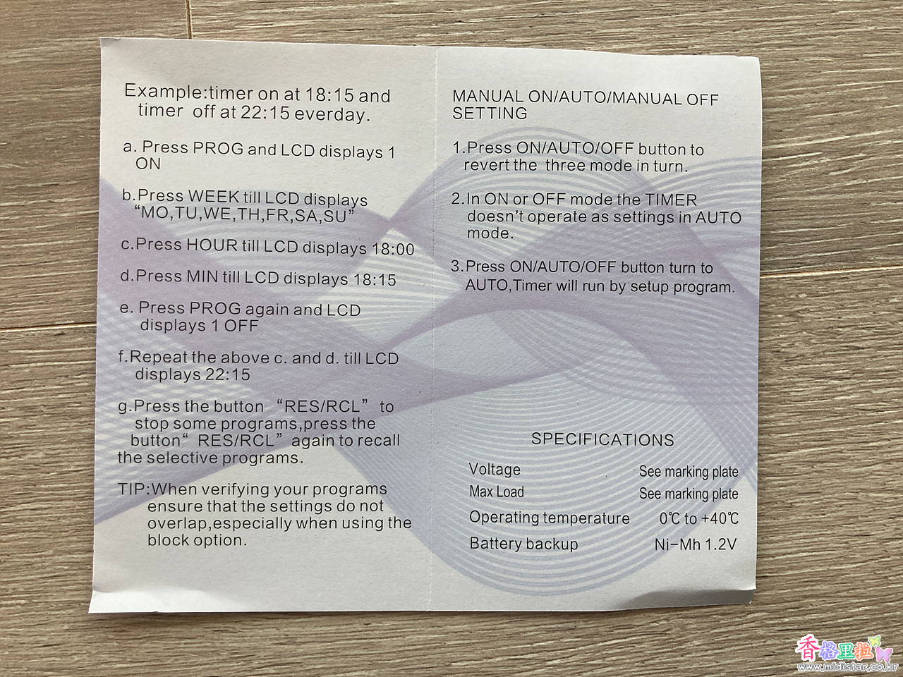 ▲Digital Timer Switch 설명서