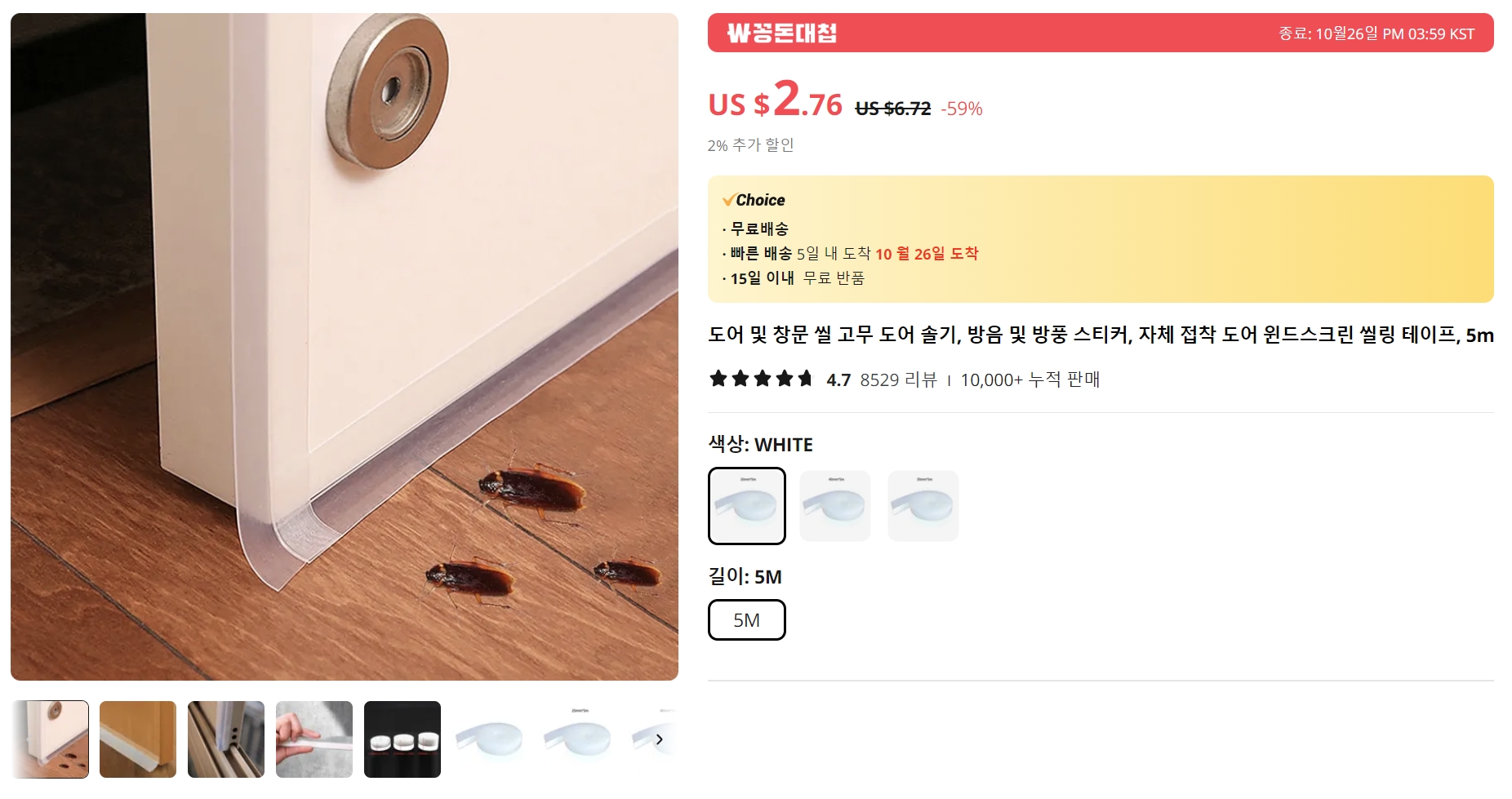 창문 방풍 씰링 테이프 가격은 길이 5m에 US$ 2.76