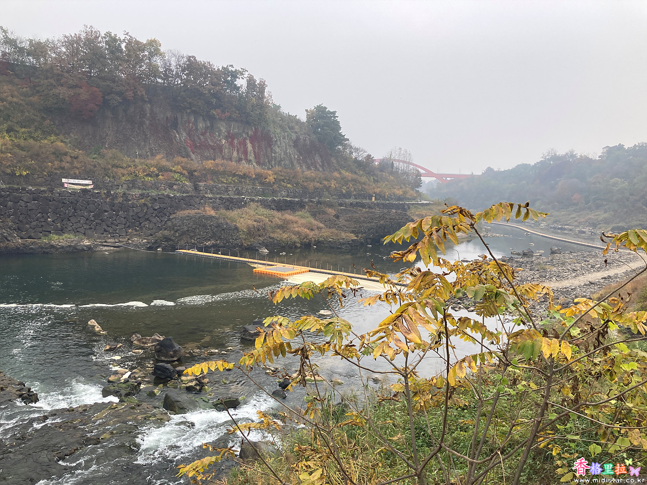 하천면을 따라 넓고 평평하게 펼쳐져 물이 떨어지는 폭포로 높이 3m, 폭 80m 밖에 안되지만 지질학적으로 가치가 있는 폭포이다.