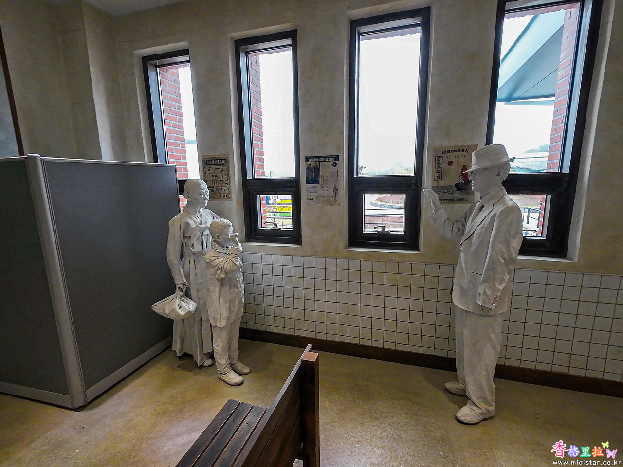 먼길 떠나는 가족을 배웅하는 가장의 조형물이 서 있다.