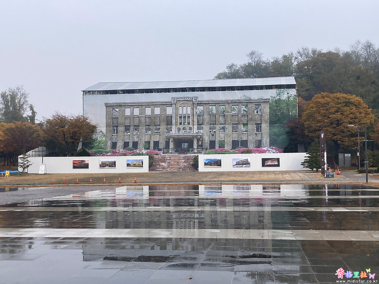 철원역사문화공원앞의 철원 노동당사는 가리개를 쳐놓고 리모델링인지? 복원공사인지? 공사를 하고 있다.