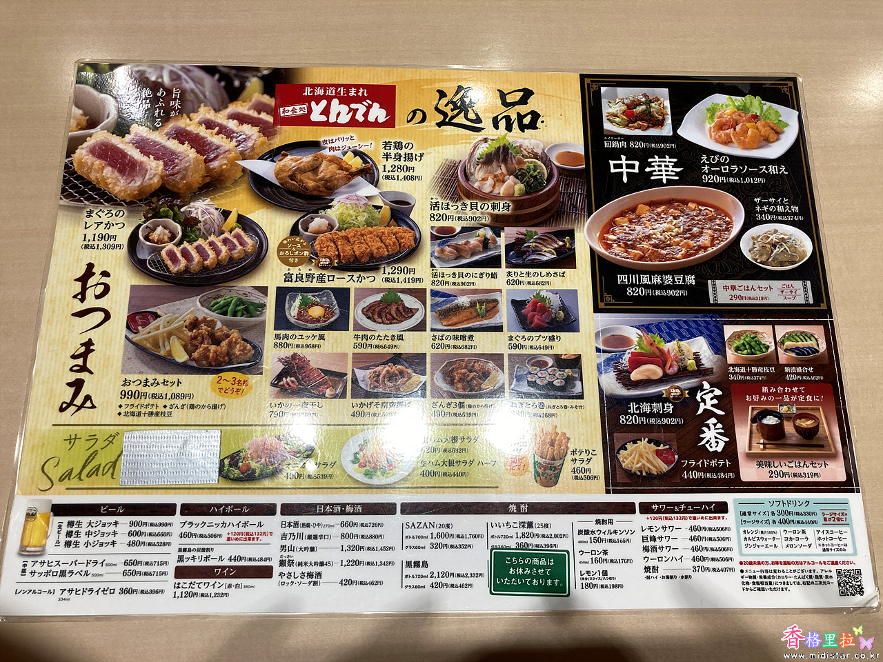 ▲츠키사무(月寒) 온센(溫川) 식당 메뉴