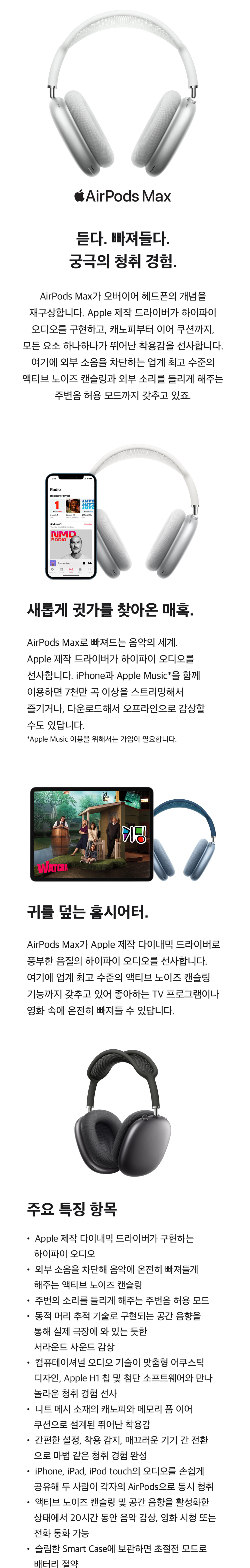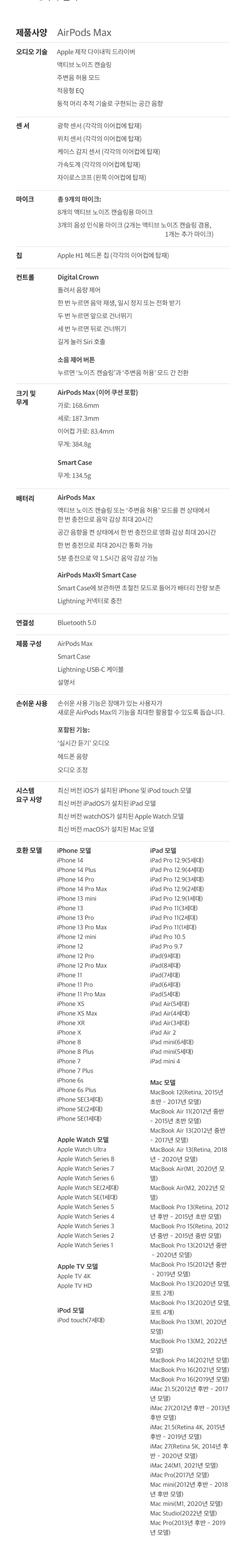▲애플 에어팟 맥스(AirPods Max) 사양