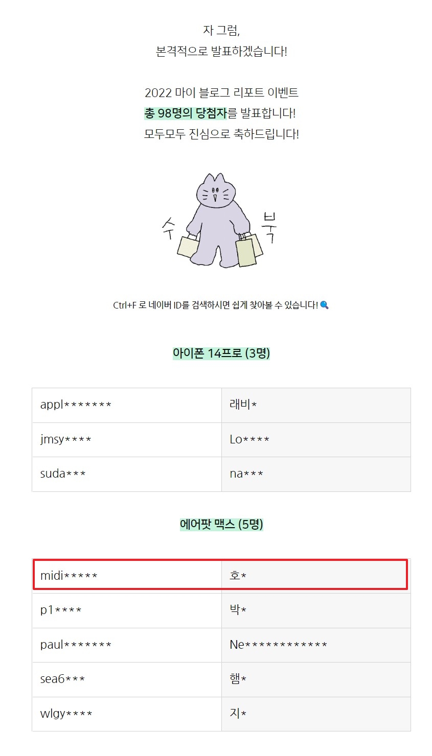 ▲네이버 경품 당첨자 발표