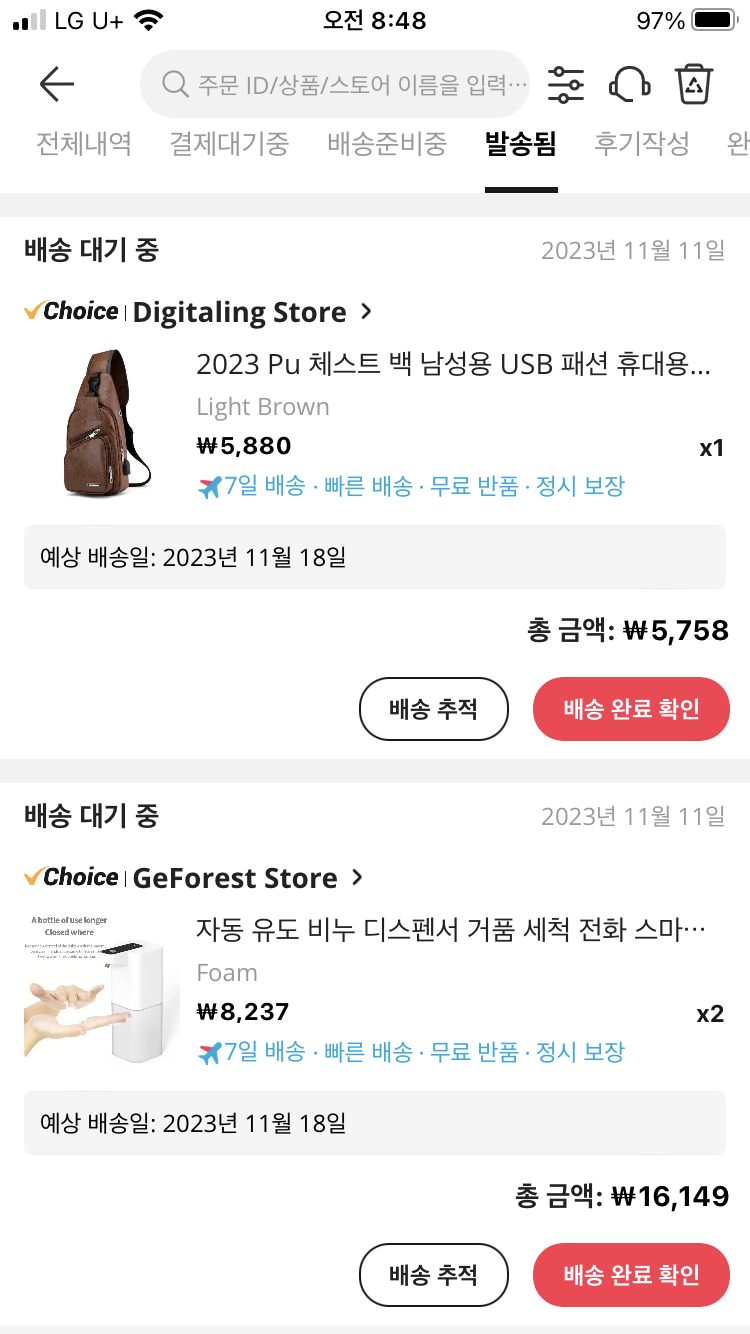 그런데 7일 배송제품으로 11월 18일 도착 예정인 물건이 어제 11월 15일 도착을 했다. 평소 5일 배송보다 더 빨리 도착을 한 셈이다.