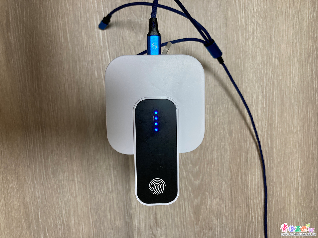 충전을 하면 4개의 LED가 동시에 깜빡거리고 충전이 끝나니 깜빡거림이 멈춘다.