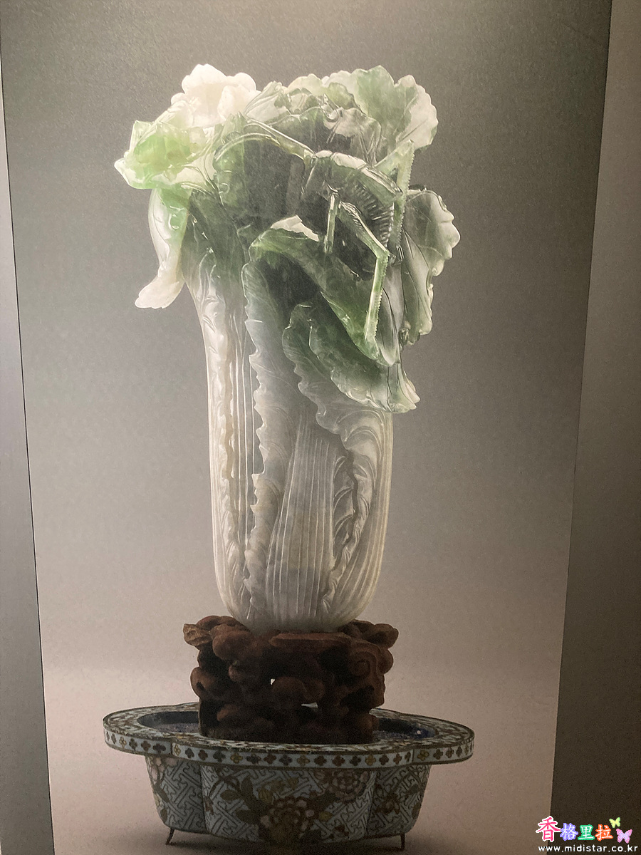 옥으로 조각한 배추의 우아한 자태.