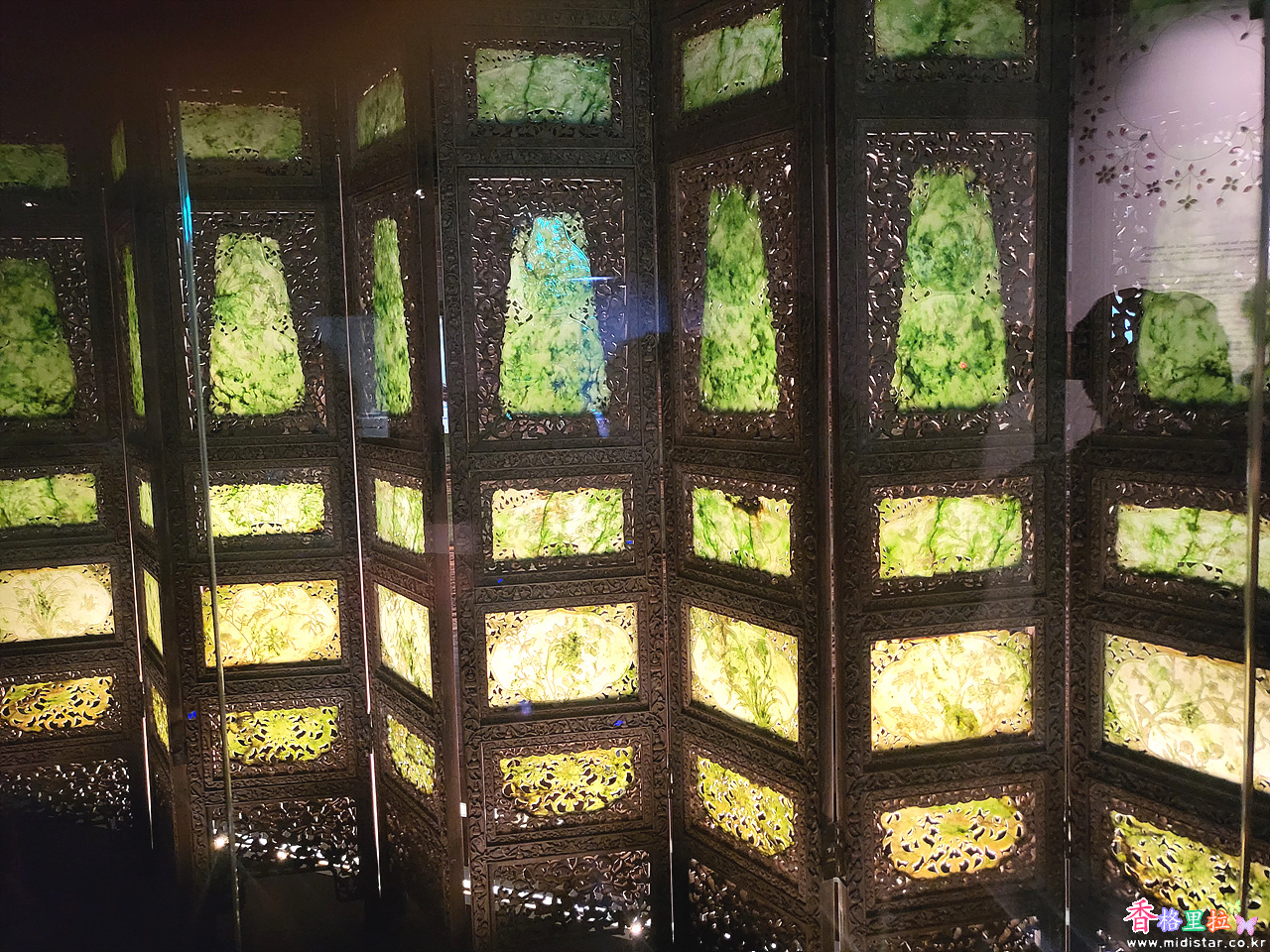 옥으로 만든 대형 병풍이 눈길을 끈다.