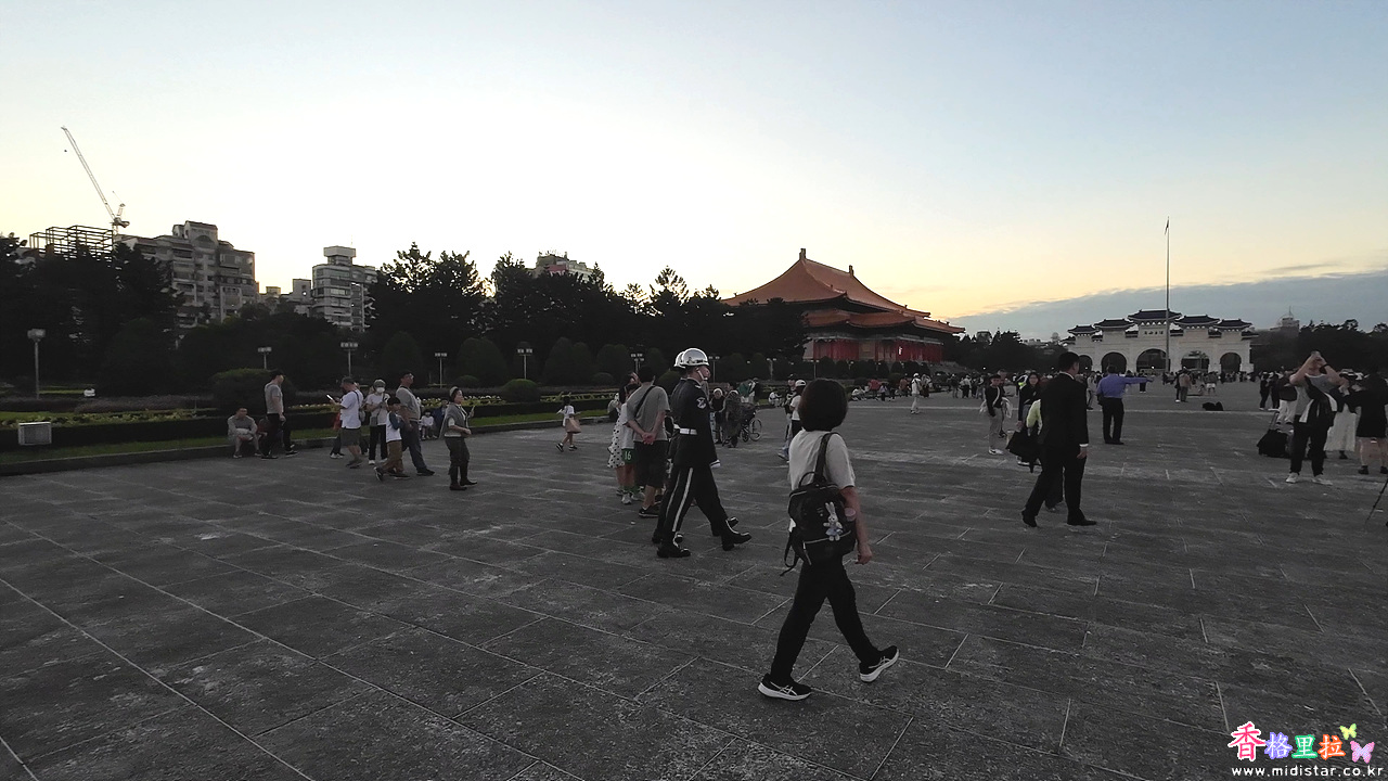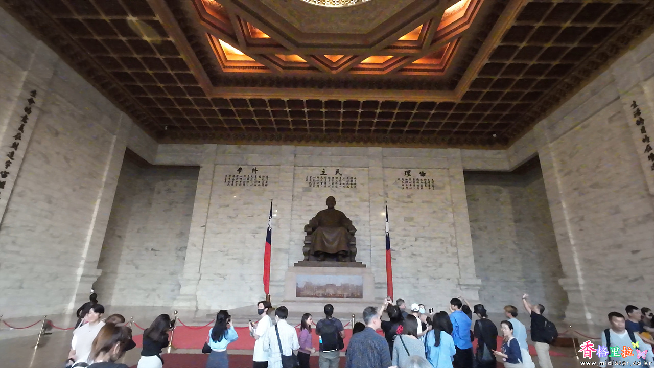 장제스(張介石)의 동상 앞에서 꿈쩍도 안 하며 경비하는 근위병의 모습이 장관이며 매시 정각마다 하는 근위병 교대식이 유명하다. 타이베이의 랜드마크 중 하나로, 미국의 링컨 기념관을 본떠 만들어졌는데 그 링컨 기념관과 비교해도 무진장 크다.