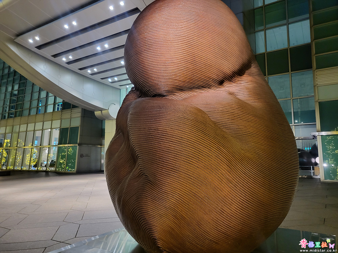 엘리베이터에 사용한 철제 케이블로 만든 조형물인데 일정 시간이 경과 한 후 엘리베이터 Cable을 교체하는데 교체 후 Cable로 원주민 작가가 만든 조형물이라 한다.