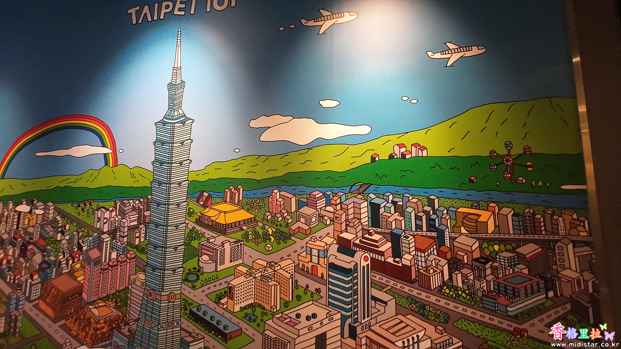 타이베이(臺北) 101 관람대 입구의 일러스트 그림.