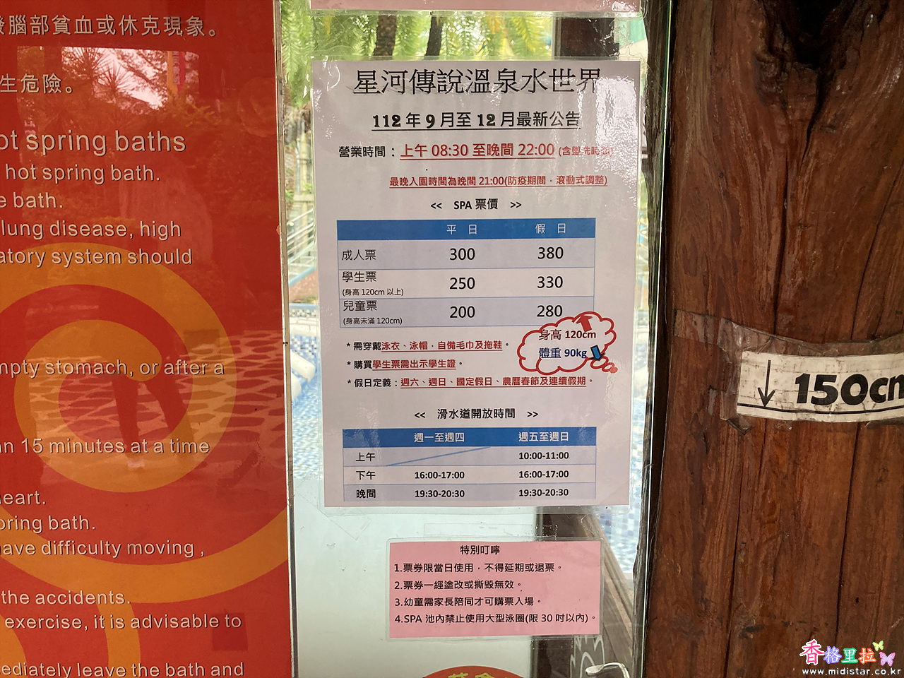 ▲온천 스파 이용 요금표
