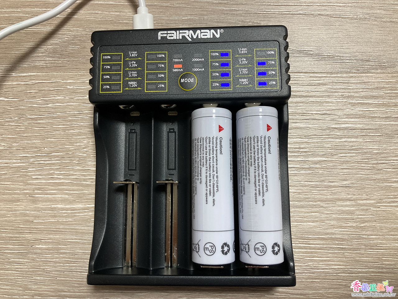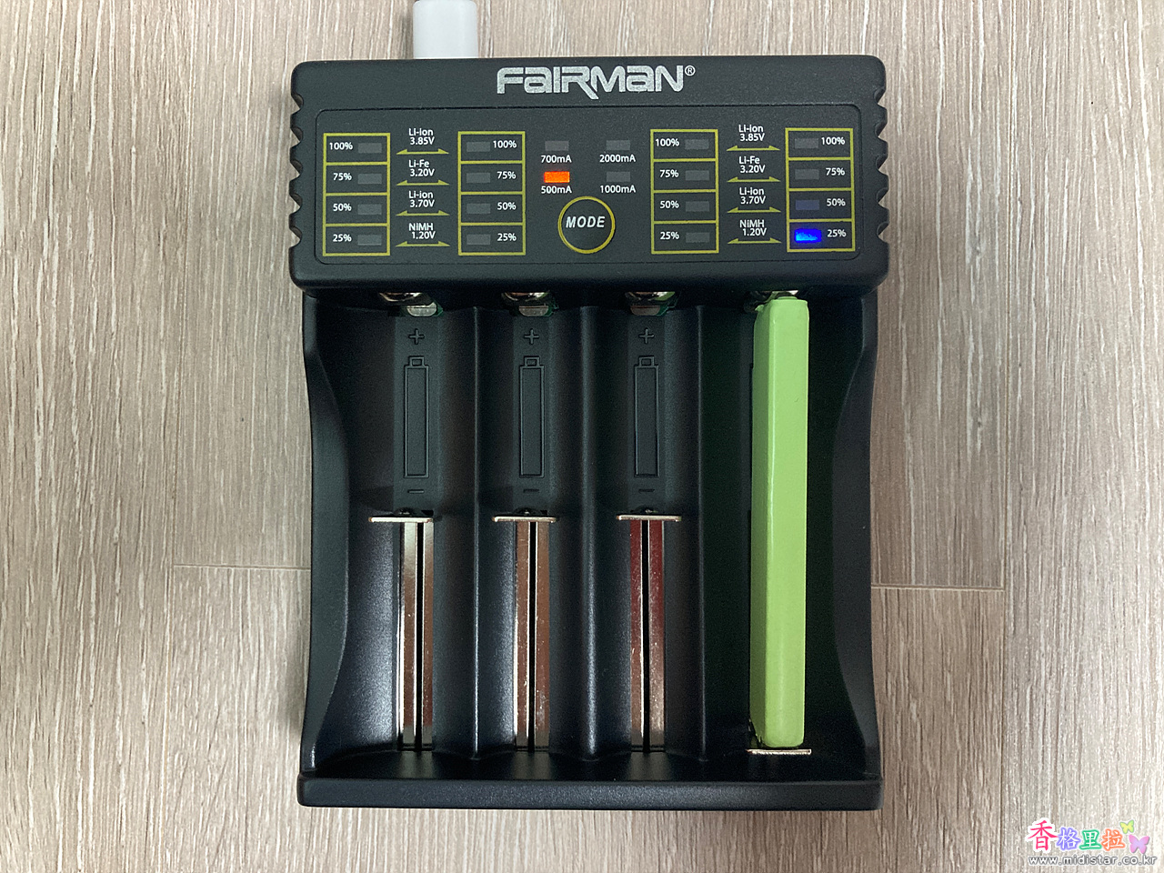 Mode 버튼을 2초 이상 누르면 충전전류를 700mA, 1000mA, 2000mA까지 선택할 수 있는데 2000mA 충전은 맨 오른쪽 슬롯만 가능하다.