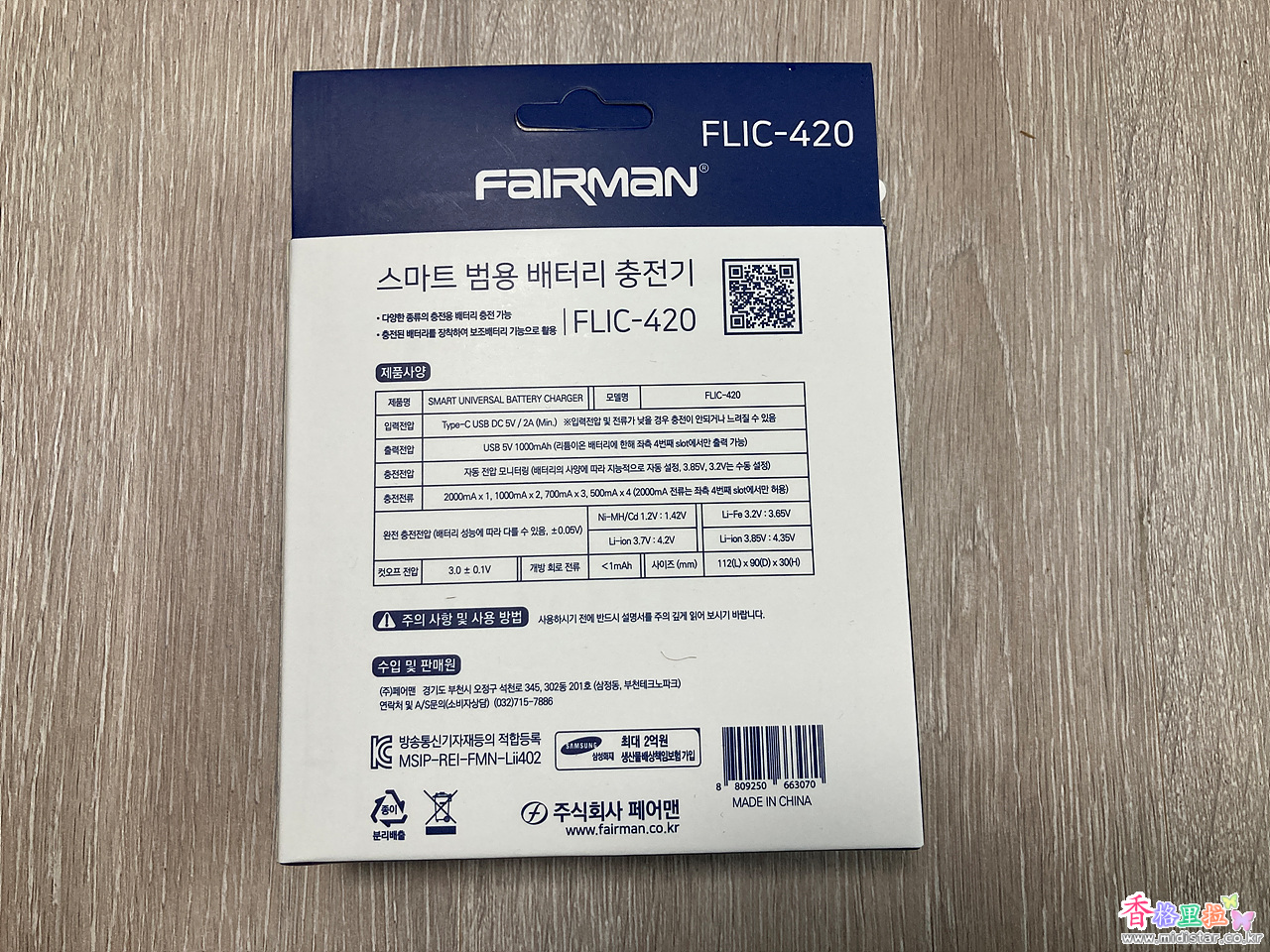 ▲스마트 범용 배터리 충전기 페어맨 FLIC-420 박스