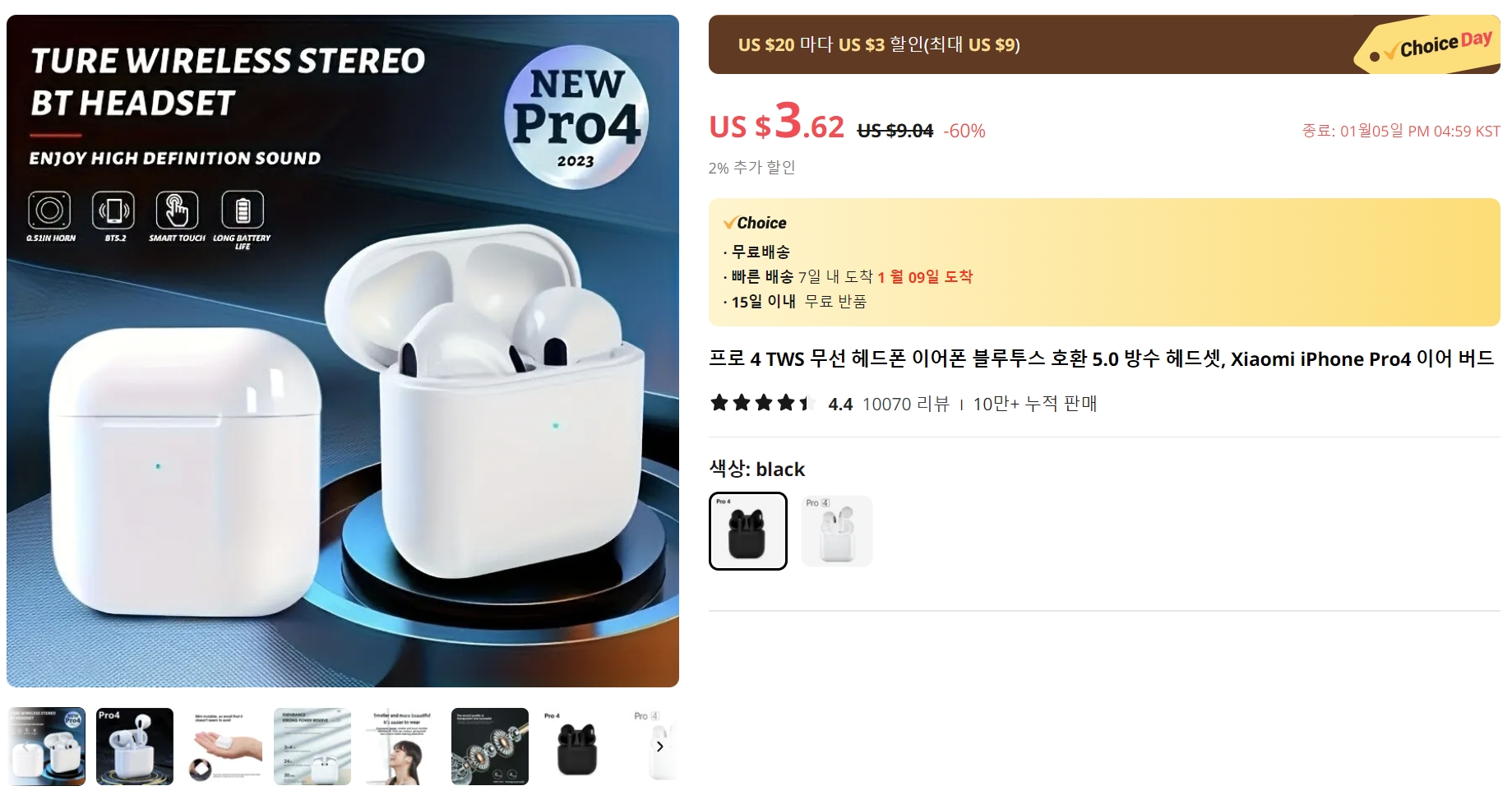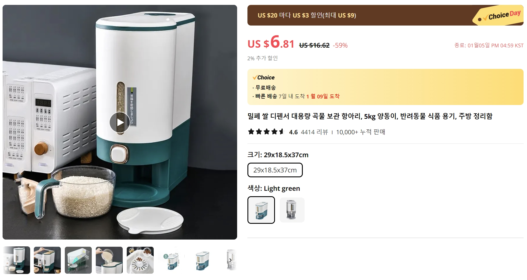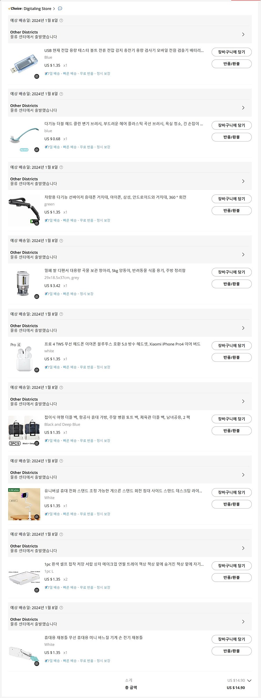 알리직구로 USB Tester, 무선 이어폰, 5Kg 쌀통 등 9종 구입