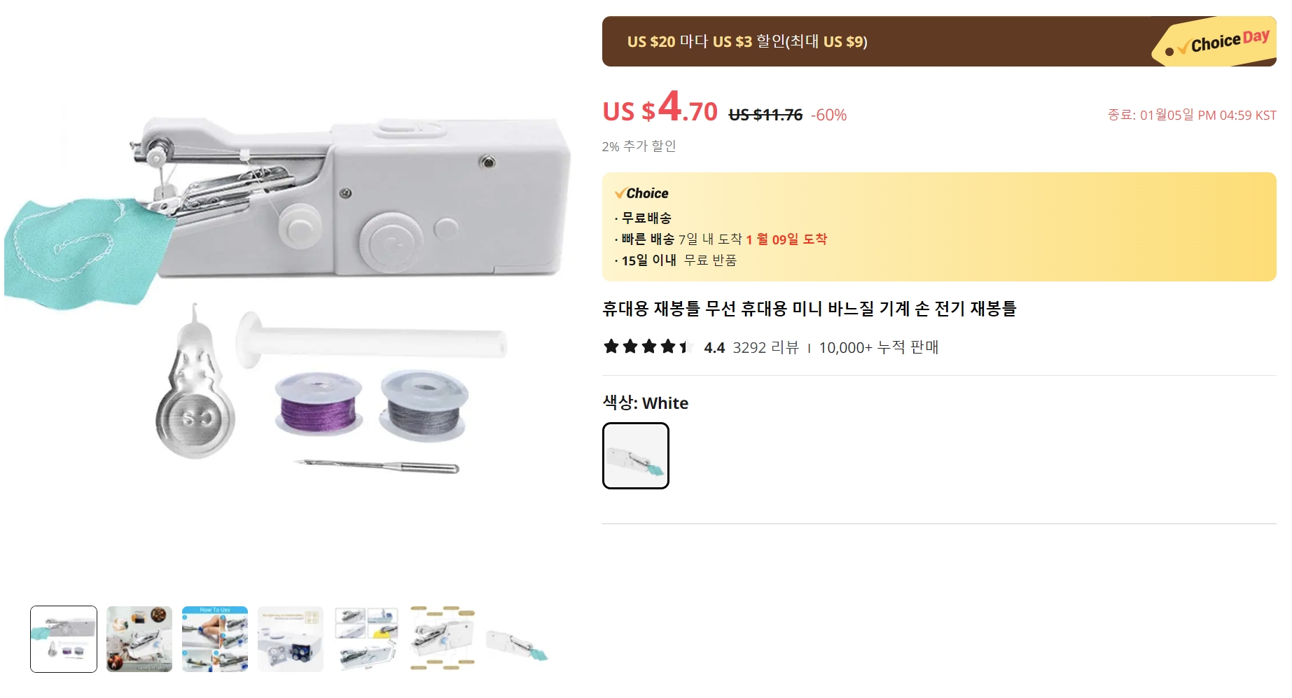 가장 망설이다가 구입한 휴대용 재봉틀.
