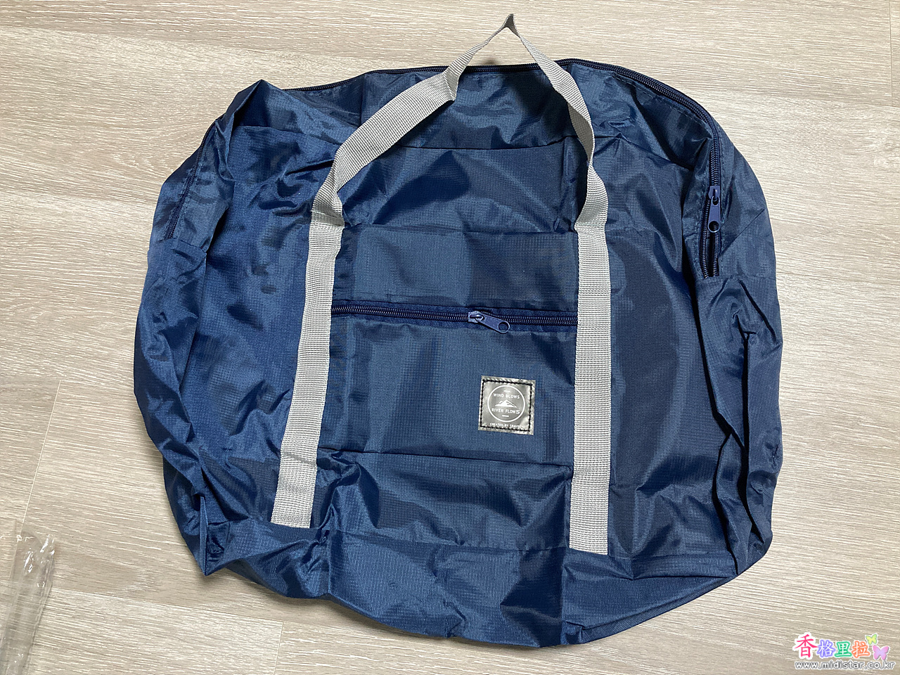 여행 시 접어서 넣고 가서 짐이 많아지면 보조가방으로 활용할 수 있는 가방인데 여행 캐리어 손잡이에 끼울 수 있도록 되어있다.
