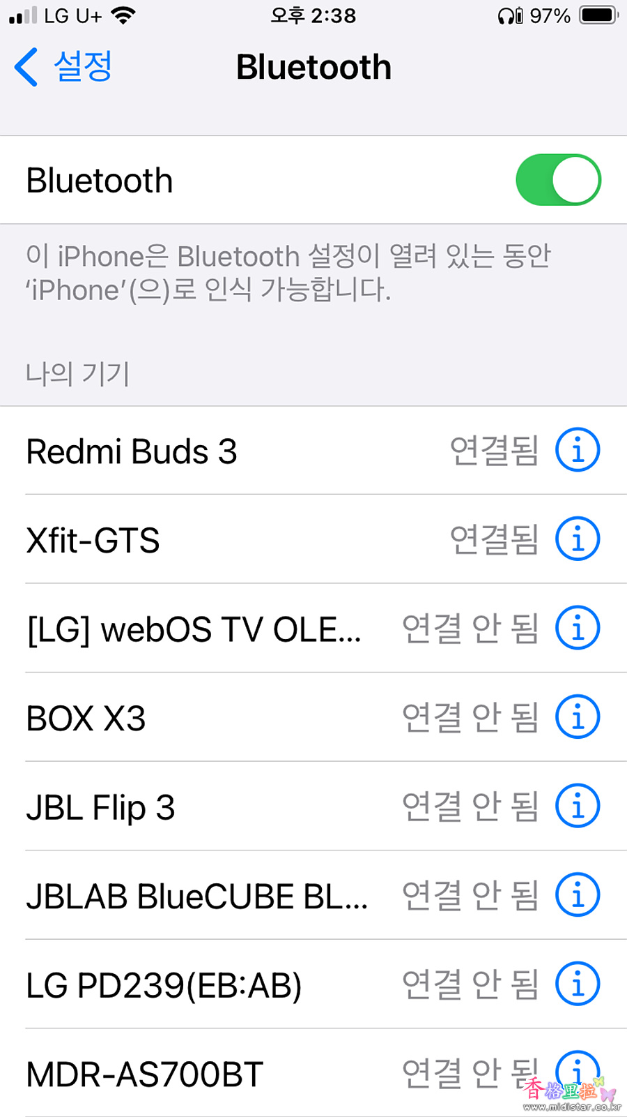 아이폰과 샤오미 Redmi Buds 3 을 Bluetooth 페어링을 한 후 음악을 들어 본 다음 TWS를 페어링 한 후 들어보았다.