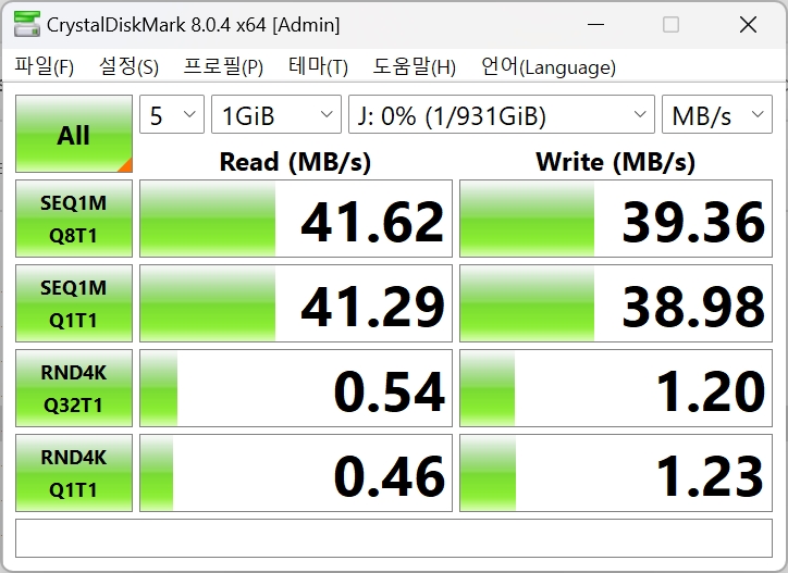 Orico Hard Drive Case에 같은 Hitachi의 1 TB Hard Disk를 장착했을때 읽기, 쓰기가 2배 정도 빨라졌다.