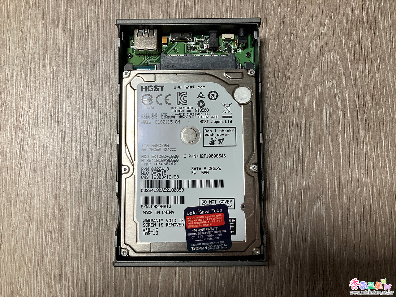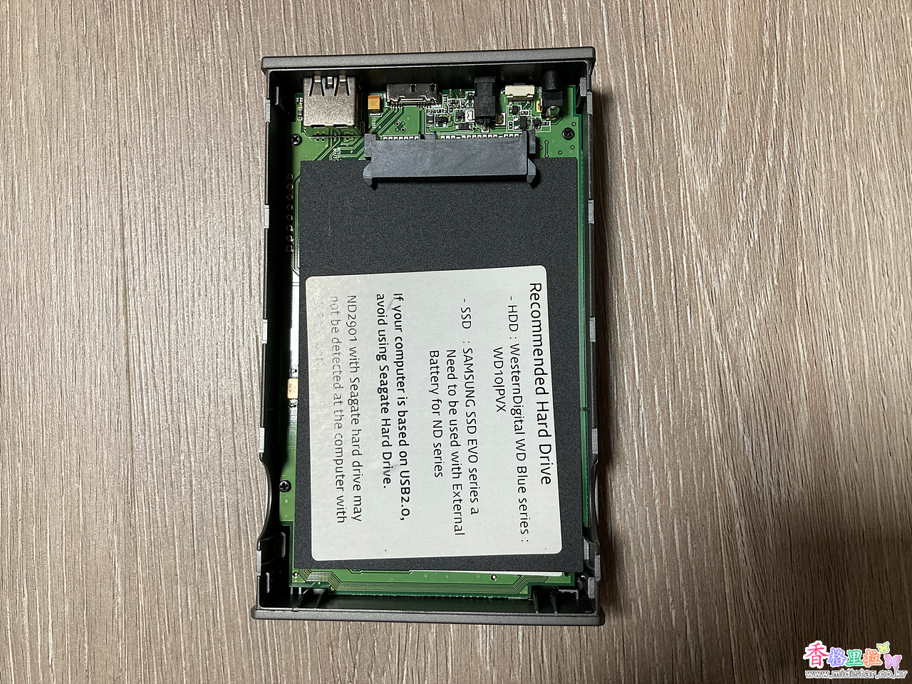 Nexto DI ND2901 내부에는 Hitachi의 1 TB 2.5" Hard Disk가 들어있다.