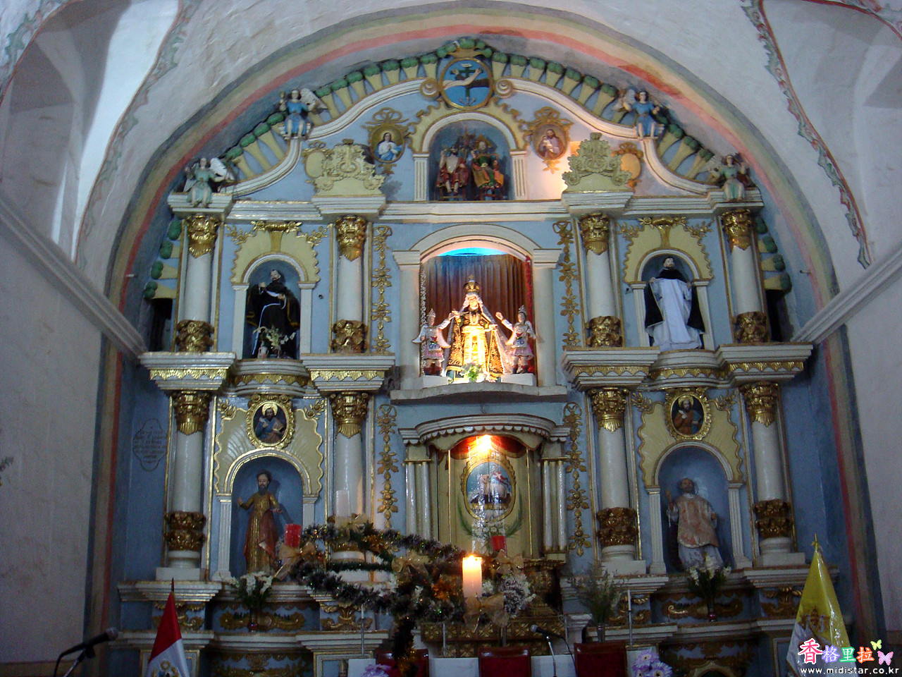 내부는 목조로 지어진 오래된 교회이다.