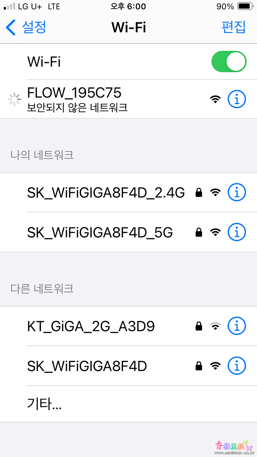 드론 본체와 아이폰으로 WiFi 연결 후 (Flow_195C75로 연결)