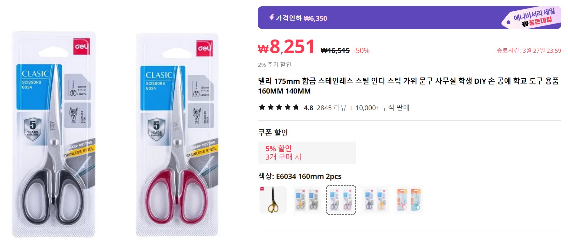 집에서 사용하고 있는 가위가 오래되어 잘 잘리지 않고 테이프의 끈적임이 남아 있어 구입했다.